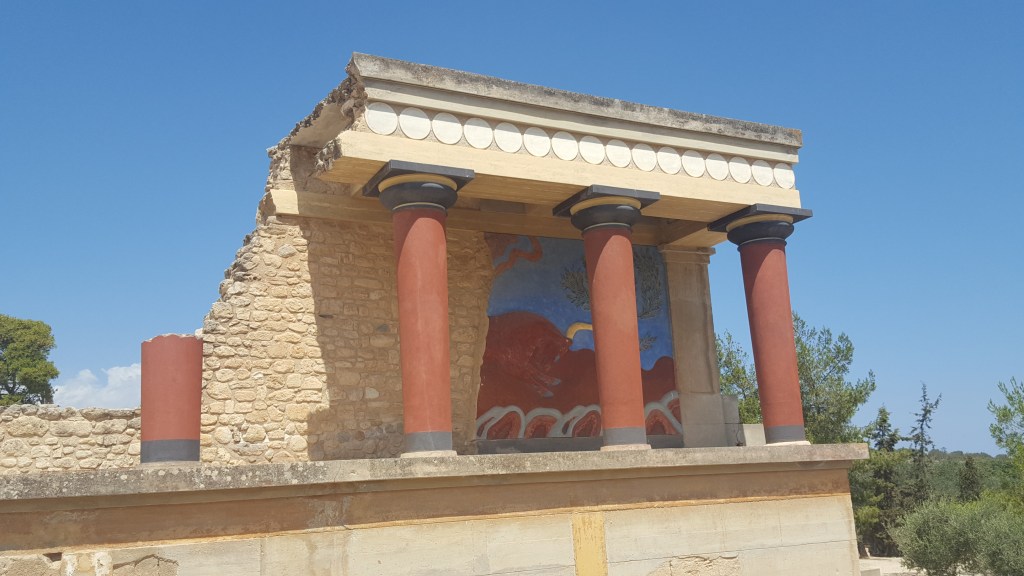 The ancient city of Knossos is located just to the south of Heraklion and is worth a visit. Knossos was impressive and was the first civilisation of Europe and the home of the Minatour – half man, half ox which used to eat people!