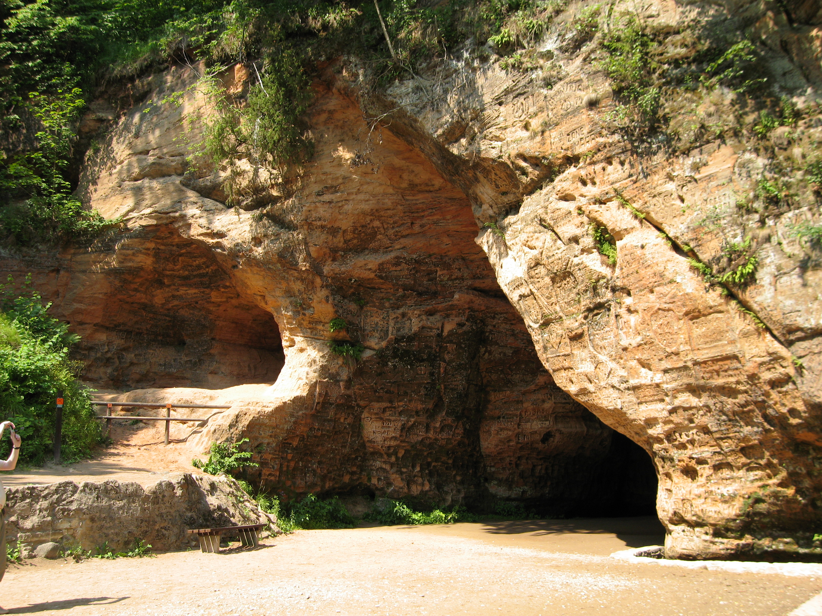 Next we stopped to have a look at Gutmanis Cave which is the largest cave in the Baltics. It started forming over 10,000 years ago shortly after the Ice Age when the sandstone rock started to be eroded by meltwater. The cave is said to be shrouded in myth and legend. The cave walls contain inscriptions and graffiti from the 19th and early 20th centuries.