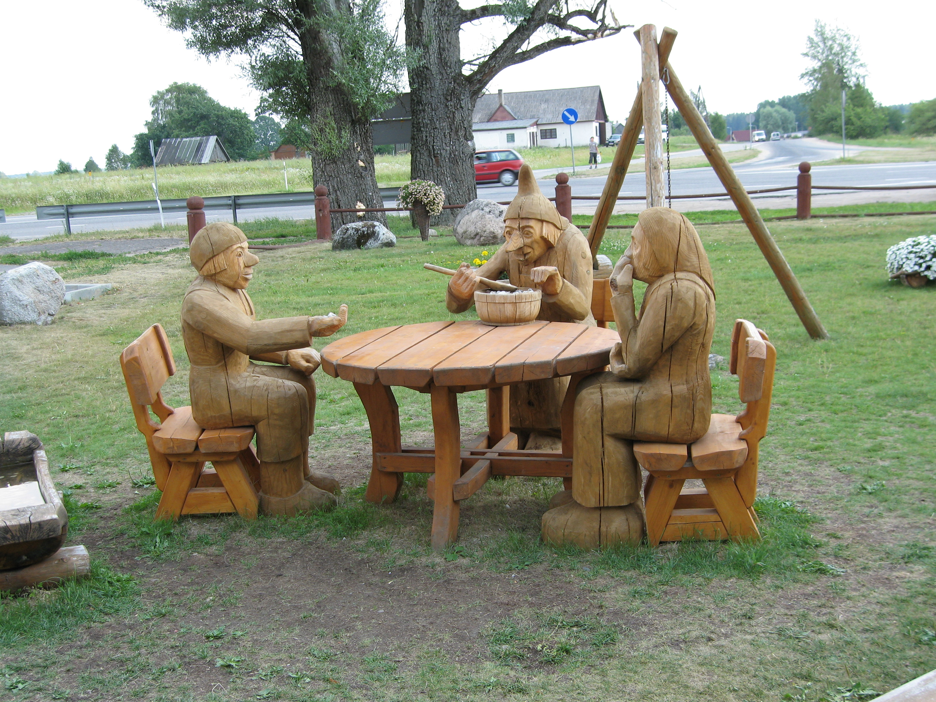 We stopped for lunch in a weird quirky restaurant called Raganas Kēķis which was themed with trolls! Trolls were everywhere including on their own table in the garden. The food was reasonable. I had some cold beetroot soup for starters which tasted better than it sounded and my main course looked like a pizza but was actually some kind of pork schnizel.