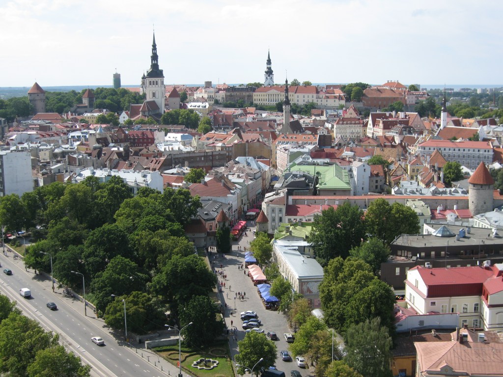 We shortly came across a large hotel, similar to the one we went up in Riga the previous day. Hoping we might find a sky bar we took the lift to the top floor. We were not too disappointed not to find a bar as we found we could open doors to a couple of balconies on different sides of the hotel and see more of the wonderful views of the old town and beyond.
