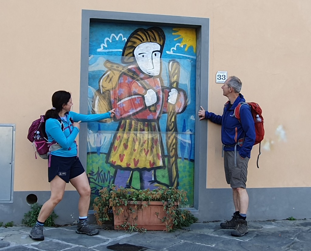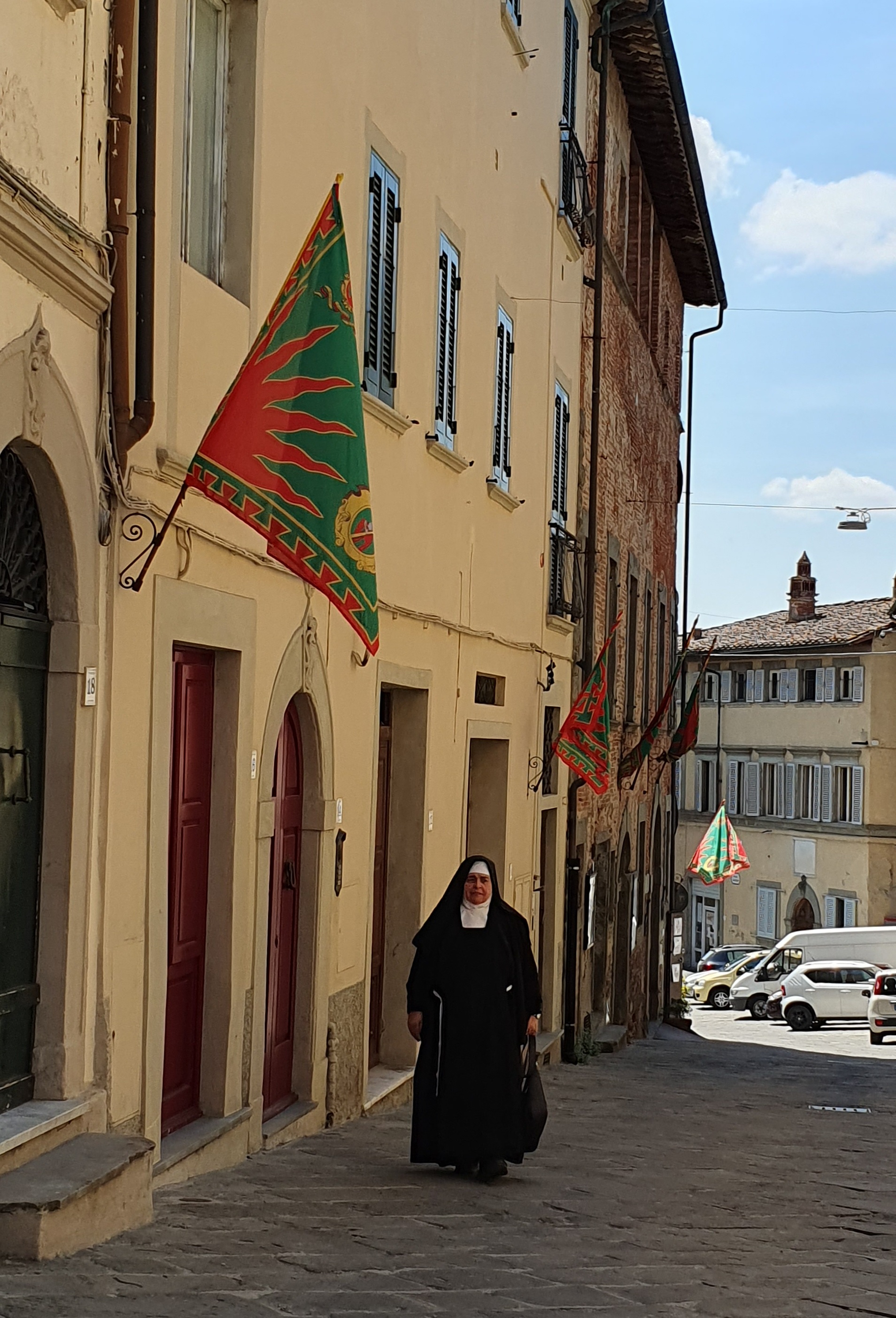 This nun waved at us as she walked past. We had just popped into a convent where we obtained a Fucecchio stamp for our Via Francigena pilgrim passports.