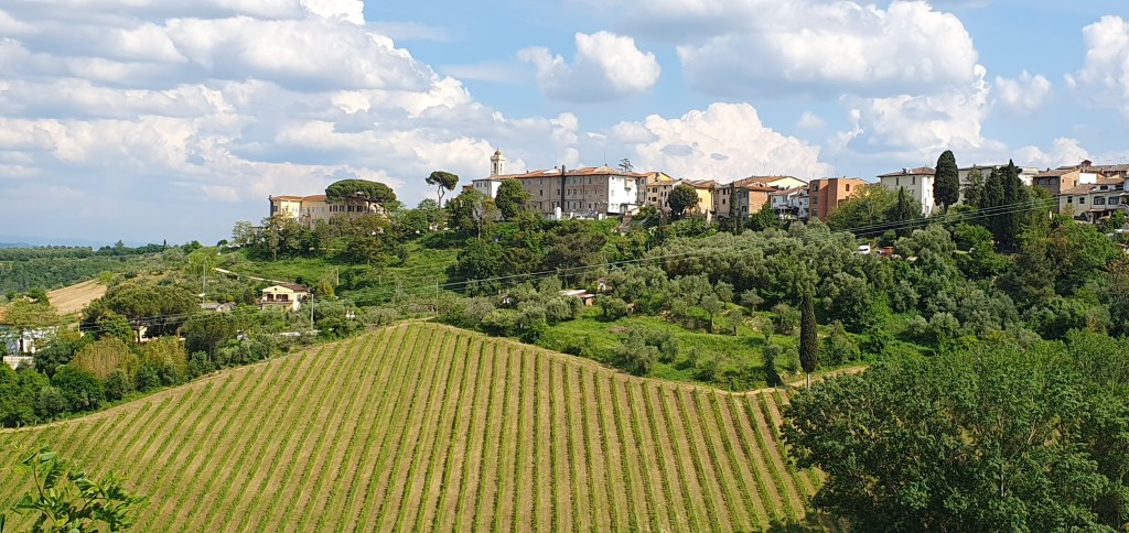 We passed through the built up area of San Miniato and next faced a steep climb up a rural track as the old part of town came into view on top of the hill.