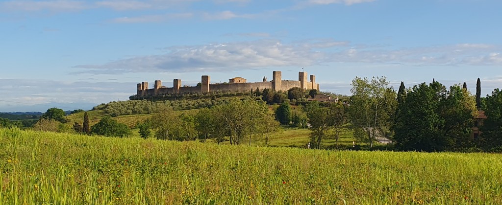 We had been left a fresh and tasty croissant each in the little pouch outside our bedroom door and we munched on this with our Illy coffee this morning! We had a last look around beautiful Monteriggioni before we began the final leg towards Siena.