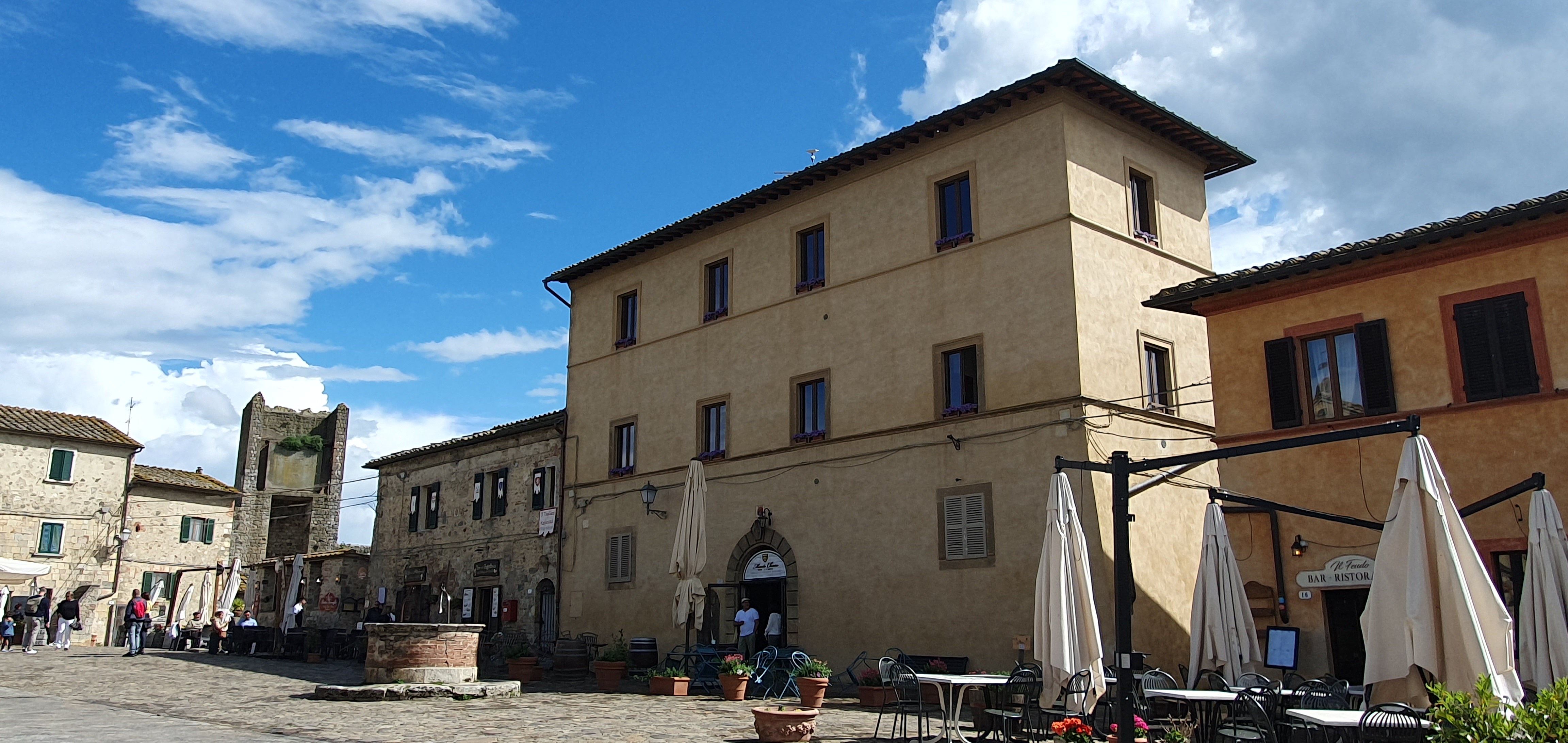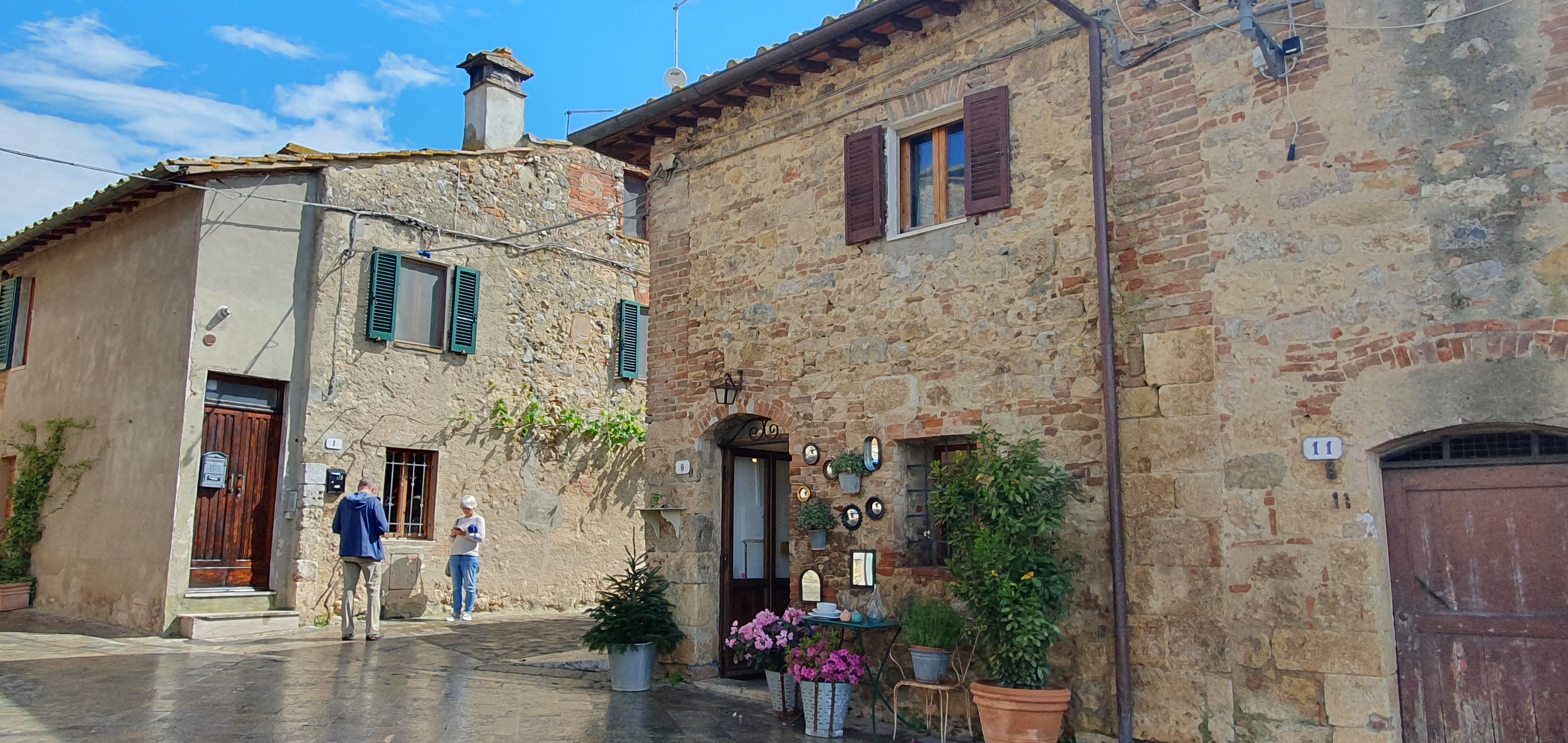 By the time the taxi arrived and drove us the short distance to Monteriggioni the sun was out again! However we were cold and soaked to the skin and were grateful the hotel let us check in slightly early so we could have hot showers and put dry clothes on. Thankfully our luggage had already arrived which enabled us to do this.