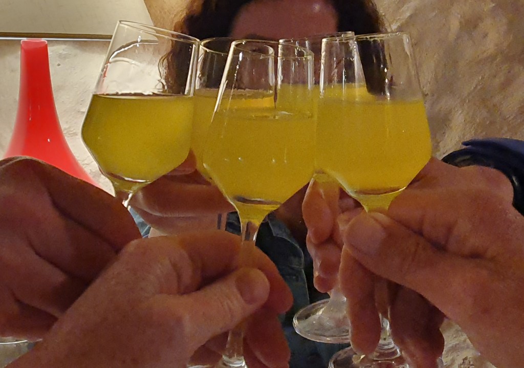 We were offered a complimentary glass of local wine from the wine tasting winery underneath our hotel which we enjoyed with Flo and Mike while waiting for Russell and Roza to return.
