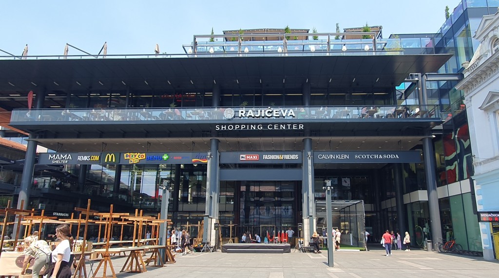 Next to the park at the top of Knez Mihailova, the main pedestrian street, is the modern Rajiceva shopping center which contains a range of brand named retailers and some eateries.