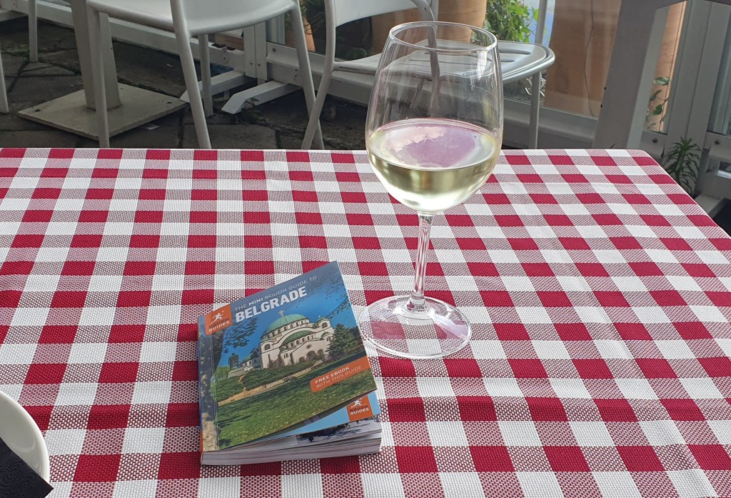 This is me when travelling solo… Billy no mates at a table for one and pretending to read the Belgrade mini Rough Guide! Actually I did read the Rough Guide and used this opportunity to plan where to visit for the rest of the trip. The wine was a crisp, chilled and refreshing Serbian white.