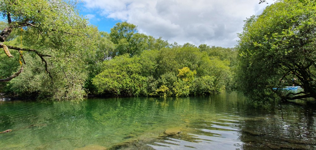 As we walked further round the lake we came across a wild swimming spot! There was a small stony ‘beach’ area and a blue mat which stretched into the water, enabling swimmers to enter the lake without hurting their feet.