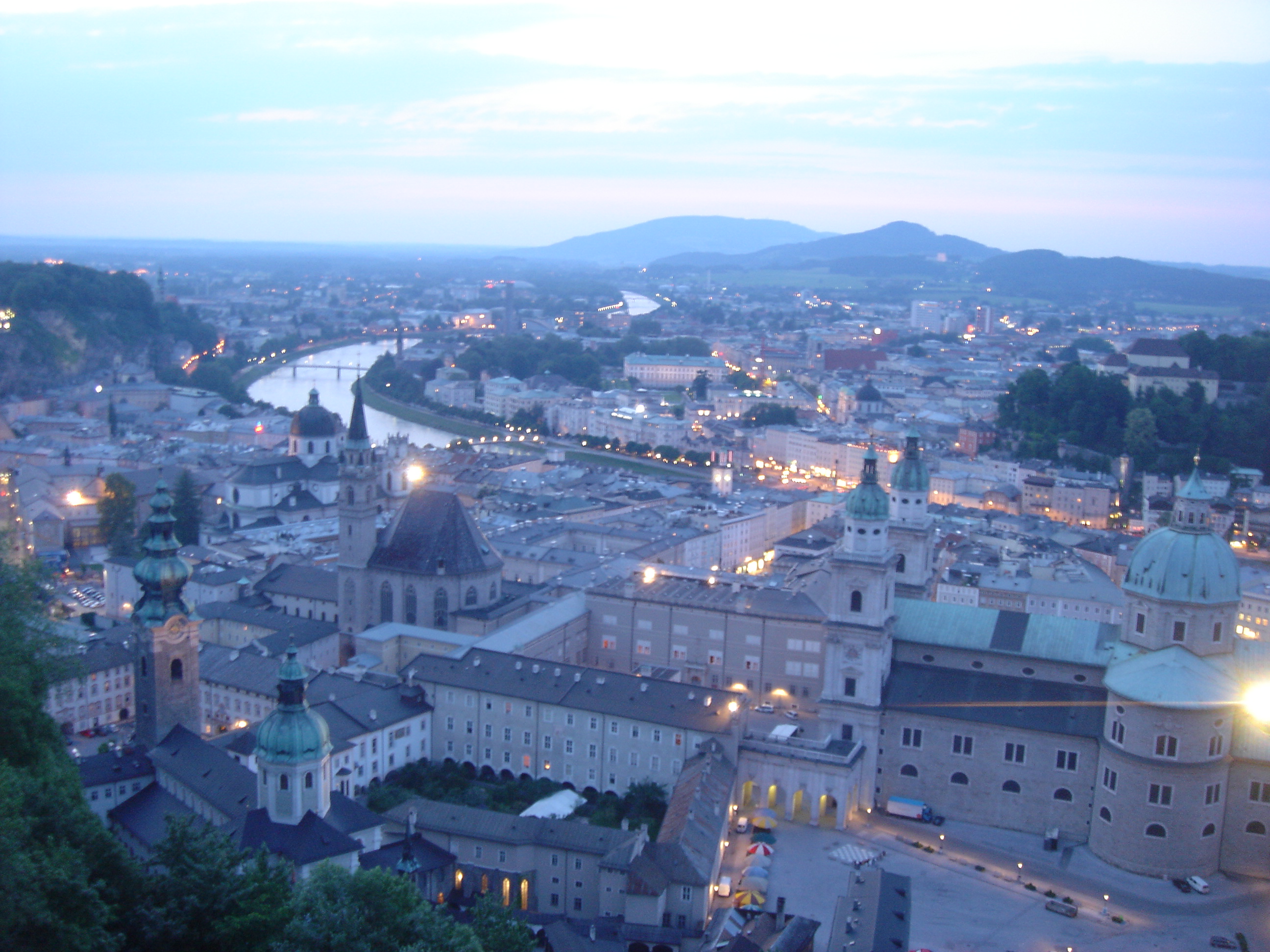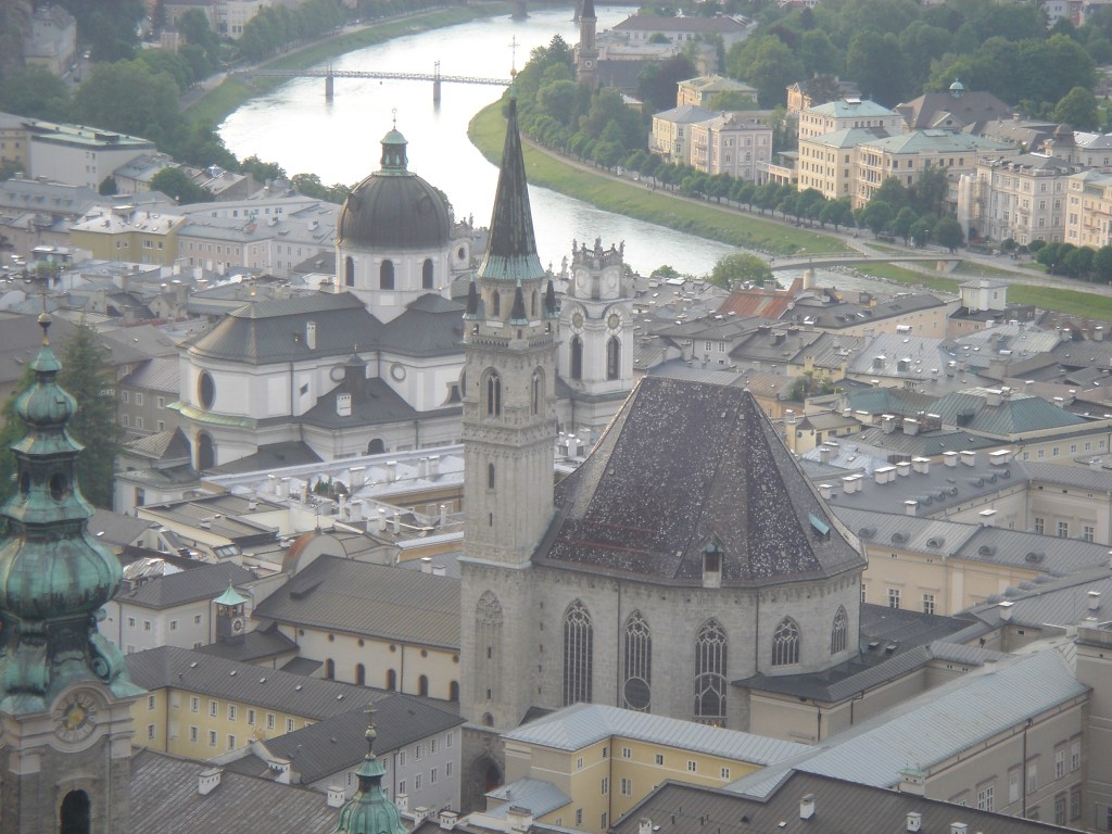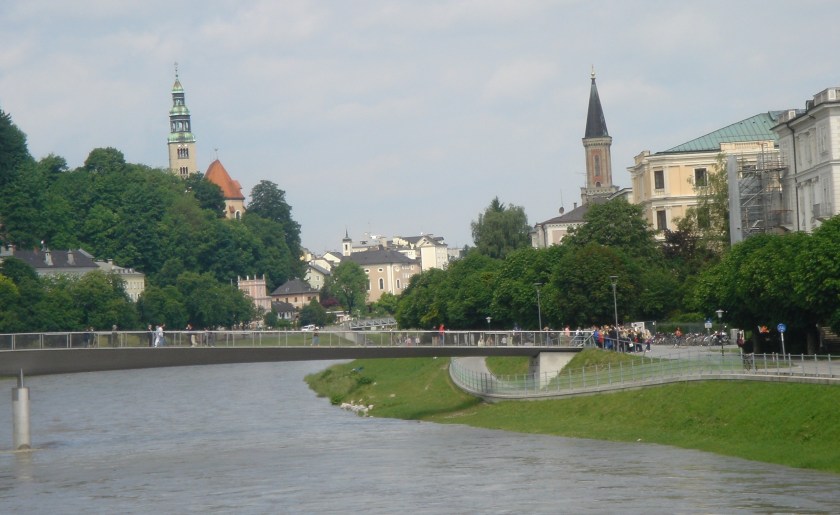 Salzburg is a beautiful city nestled next to the Alps and close to the border with Germany. The River Salzach runs through the middle of the city with the medieval buildings of the Old City on the left bank and the new city on the right bank. Mozart, the famous composer, was born in the Old City.