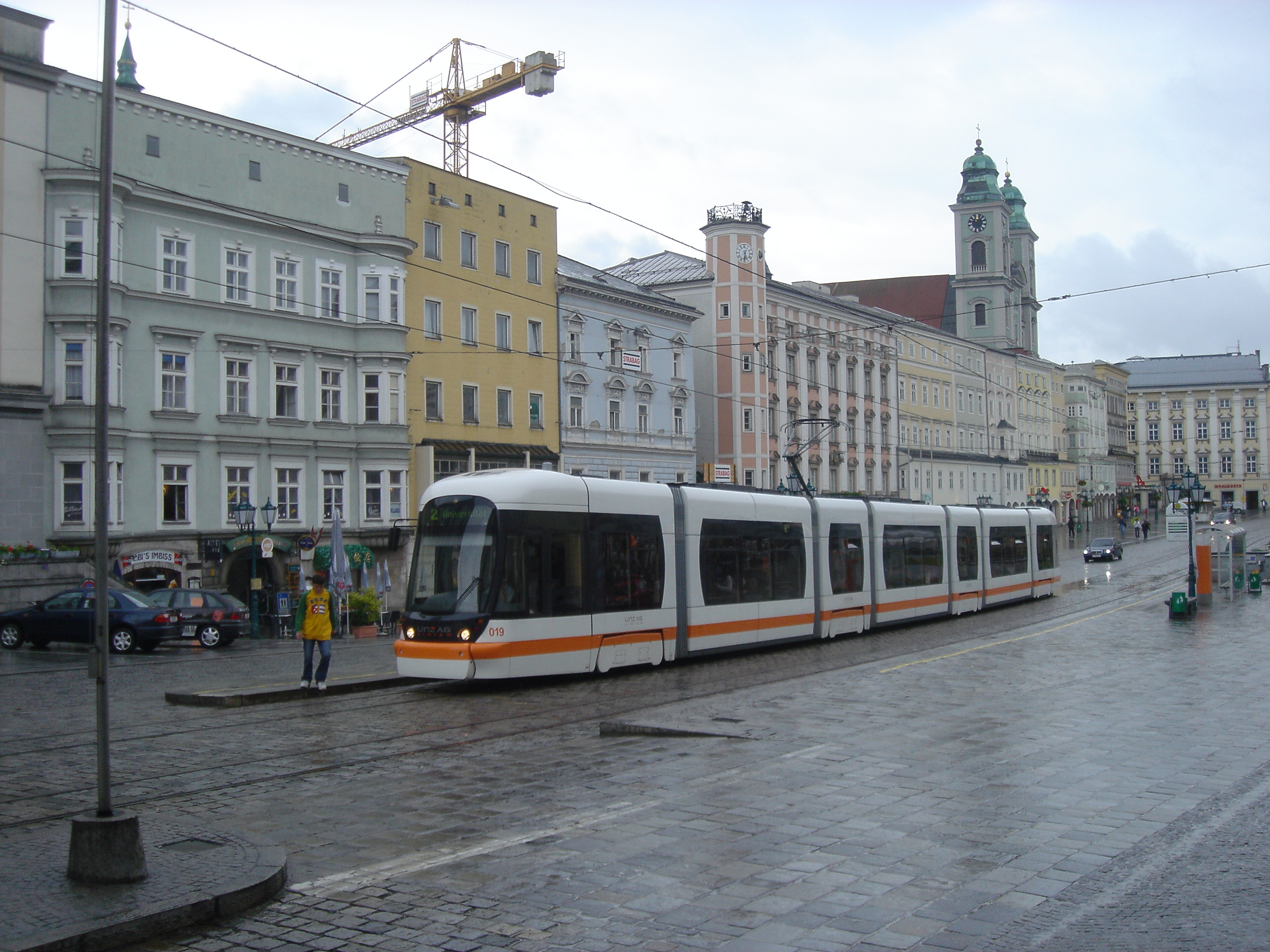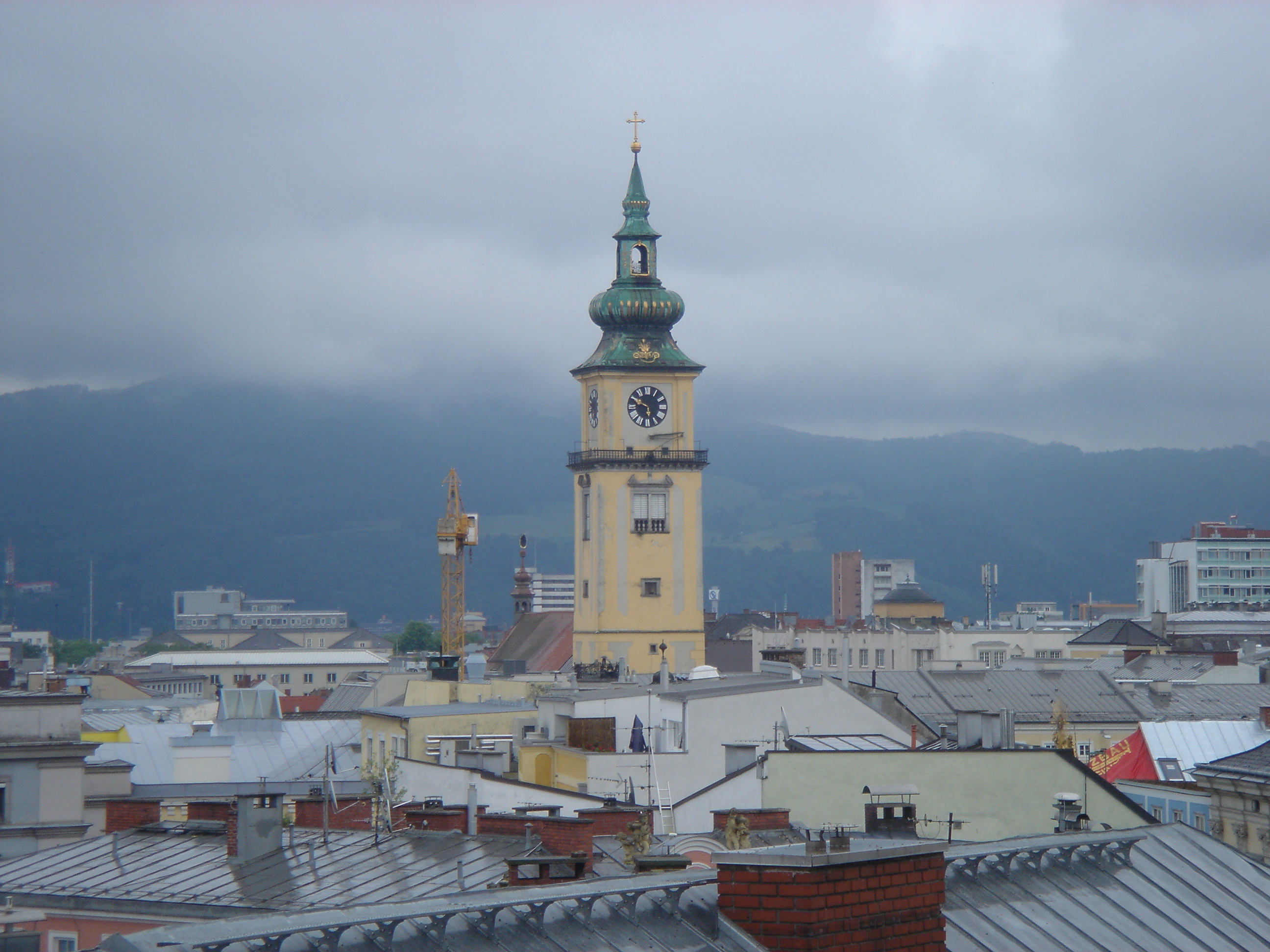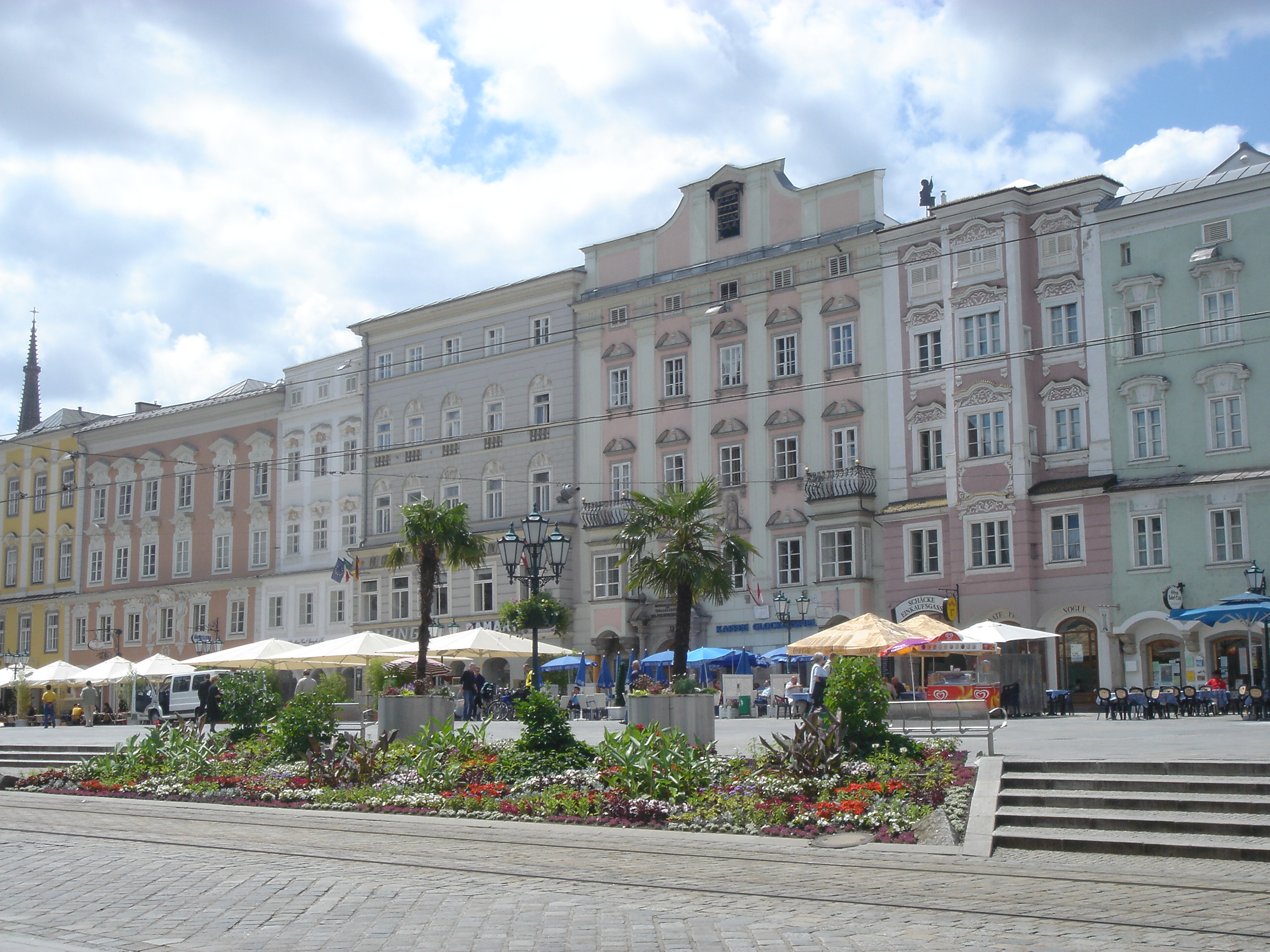 It was still pouring with rain as we stepped off the tram into the main square of Linz. In the rain we set about looking for a camera shop in search of an extra memory card. Even though it was Saturday afternoon some of the shops had closed at midday.