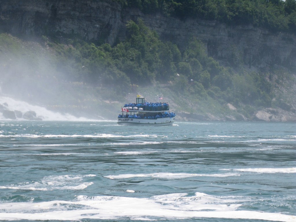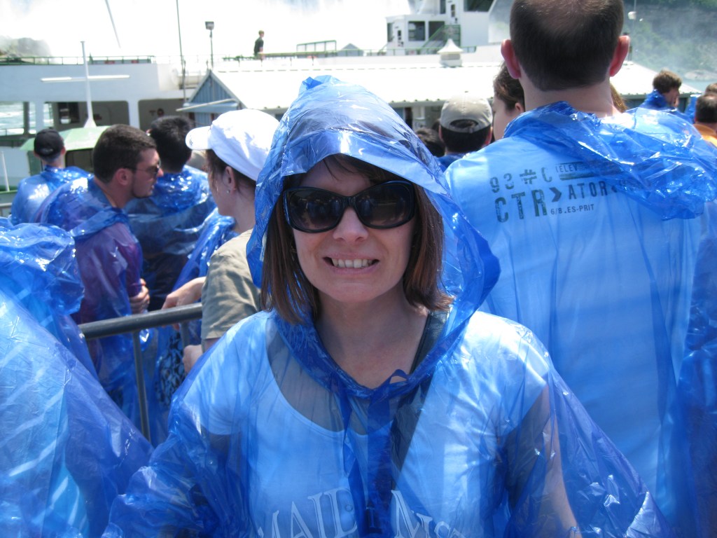 Before embarking on a Maid of the Mist boat tour which took us to the bottom of the thundering and crashing falls our little group queued up in the hot sun and we were each given our protective blue waterproofs!