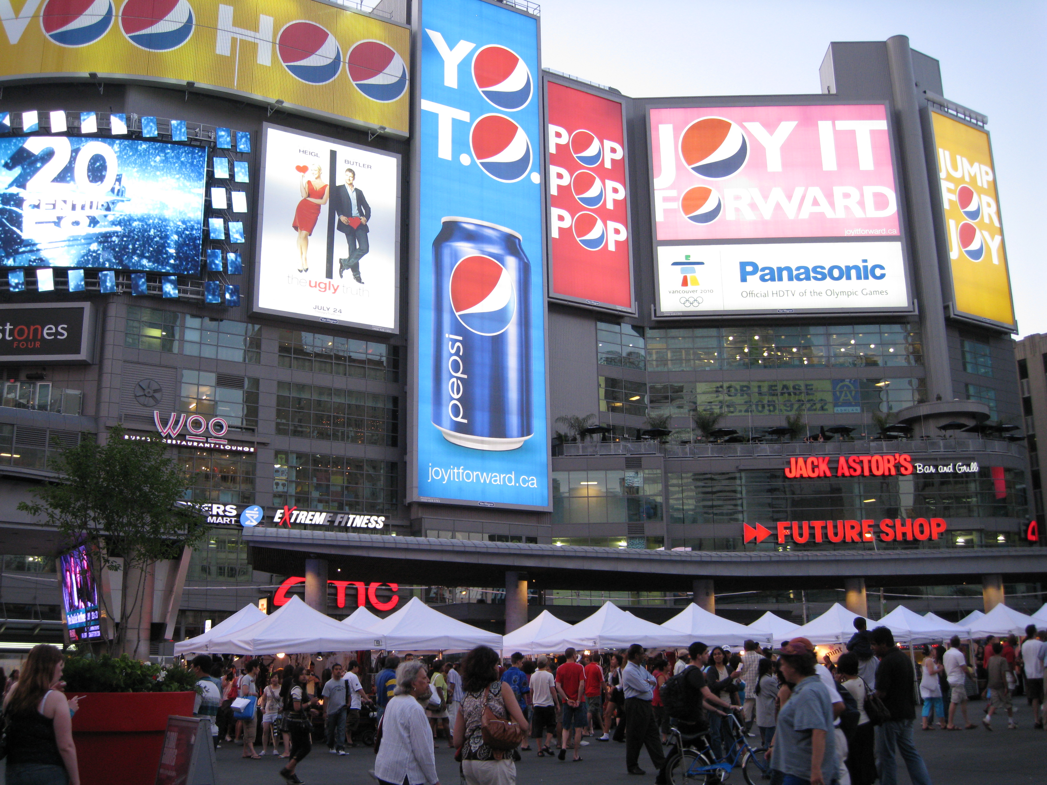 Yonge-Dundas Square is a huge public open space at the intersection of Yonge Street and Dondas Street and holds events and festivals. I was in Toronto when Michael Jackson died and this square was the scene of MJ tributes.