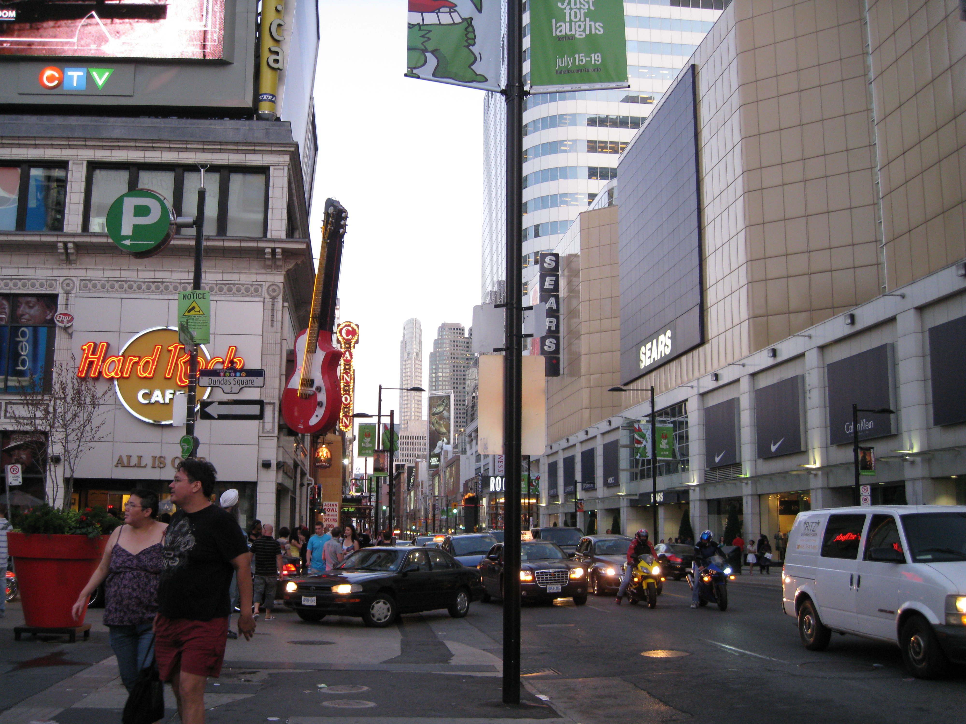 Yonge (pronounced ‘young’) Street is one of Downtown Toronto’s main streets and at one time was thought to be the longest street in the world. Yonge Street began in the 1700’s as a dirt track which ran through prairies and forests and with much development over the years it is now bustling with shops, bars, restaurants and suchlike.