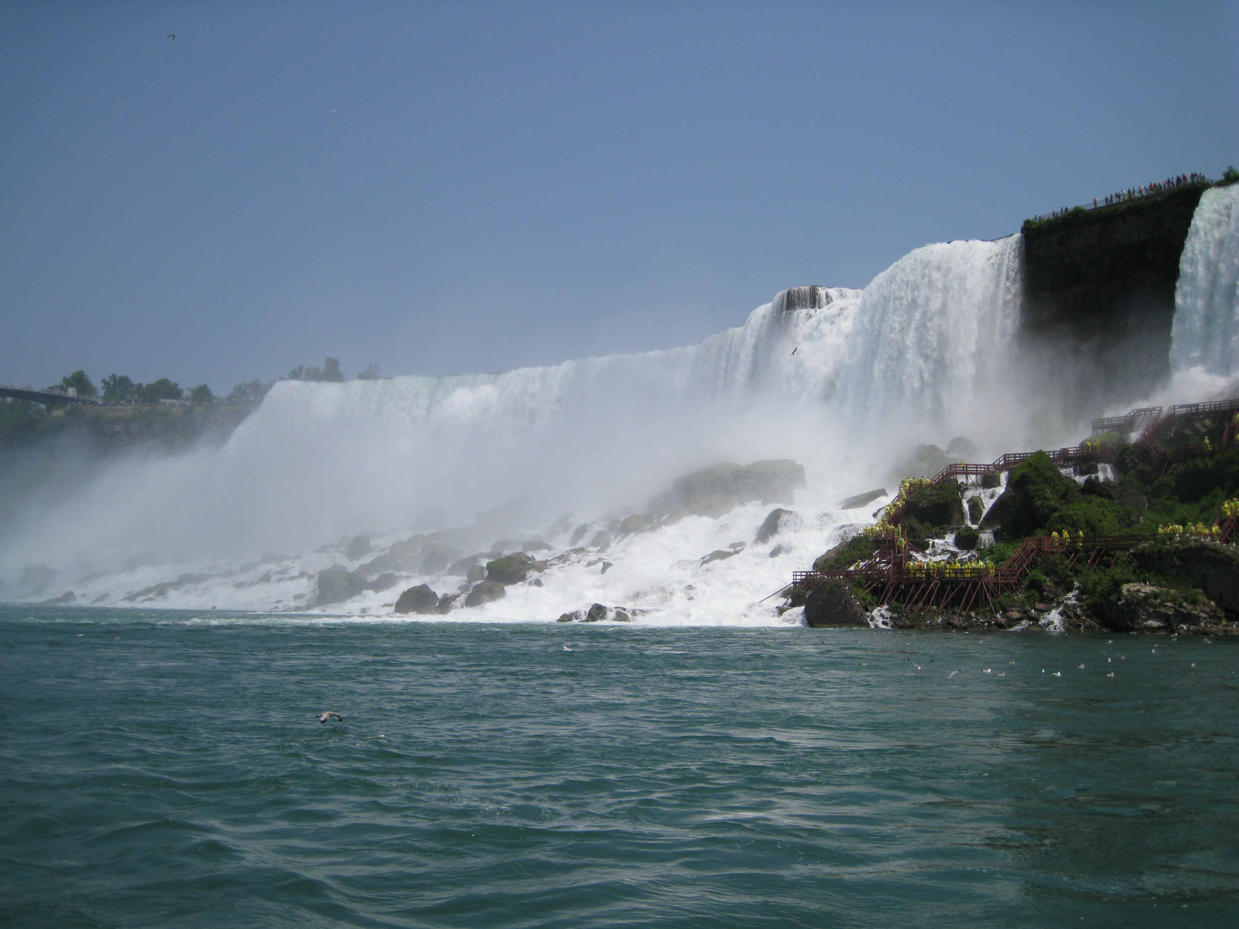 Niagara Falls are amongst the largest and most spectacular waterfalls in the world and sit on the border between Canada and the USA. They are over 50 meters high and more than 168,000 m3 of water goes over the top of the falls every minute.