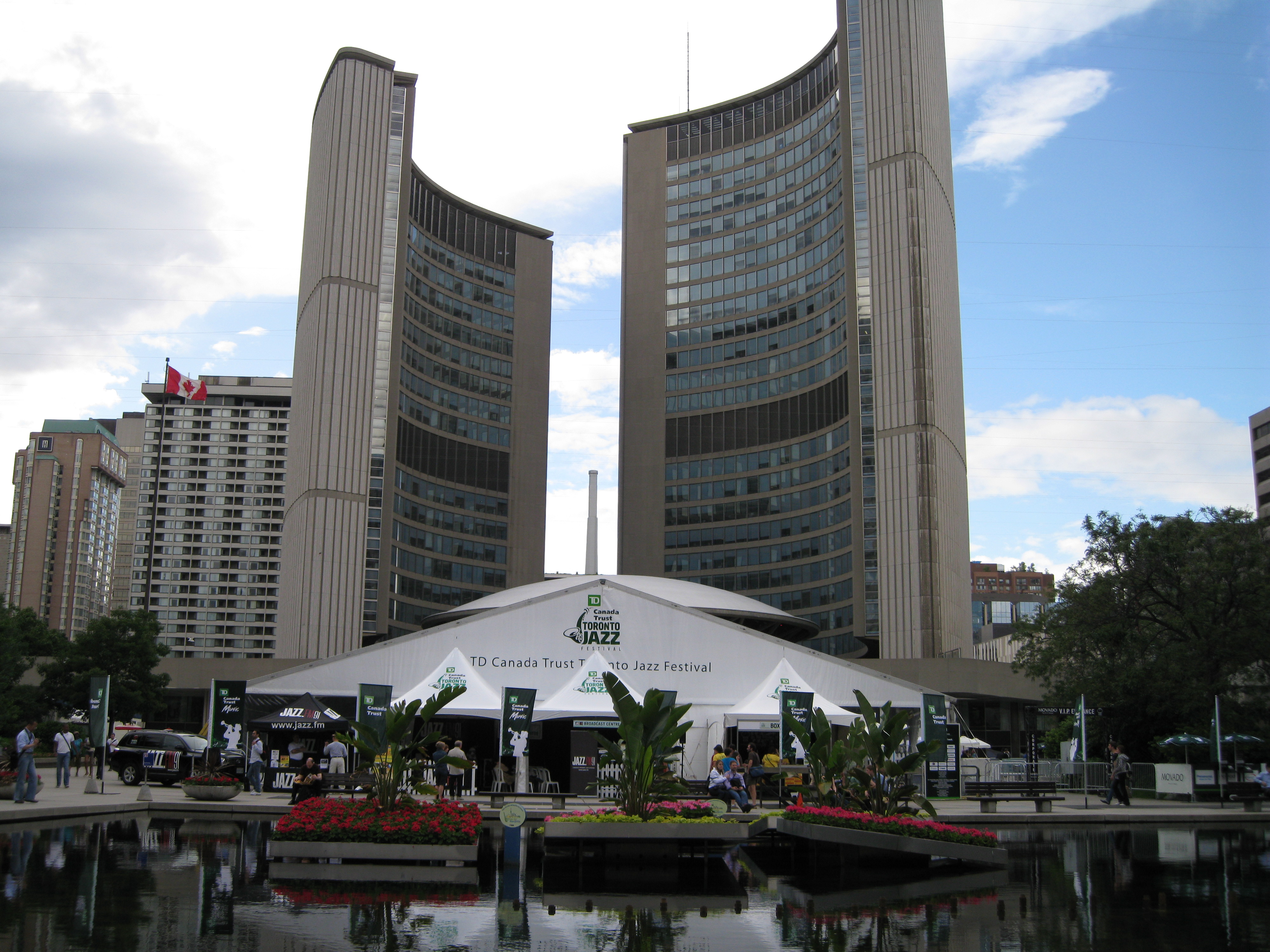 Toronto City Hall is located in an area which was once home to migrants, refugees and newcomers to the city. The modern city hall building was opened in 1965 as part of the Nathan Phillips plaza complex.