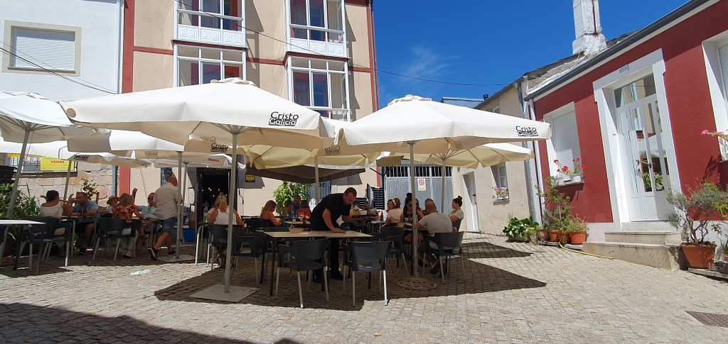 Bridget and I were not in any hurry to rush and complete our first 14 miles and we enjoyed a fabulous and leisurely lunch in Albergue O Mercadoiro, sharing a table in a lovely shady spot with Elu our guide.