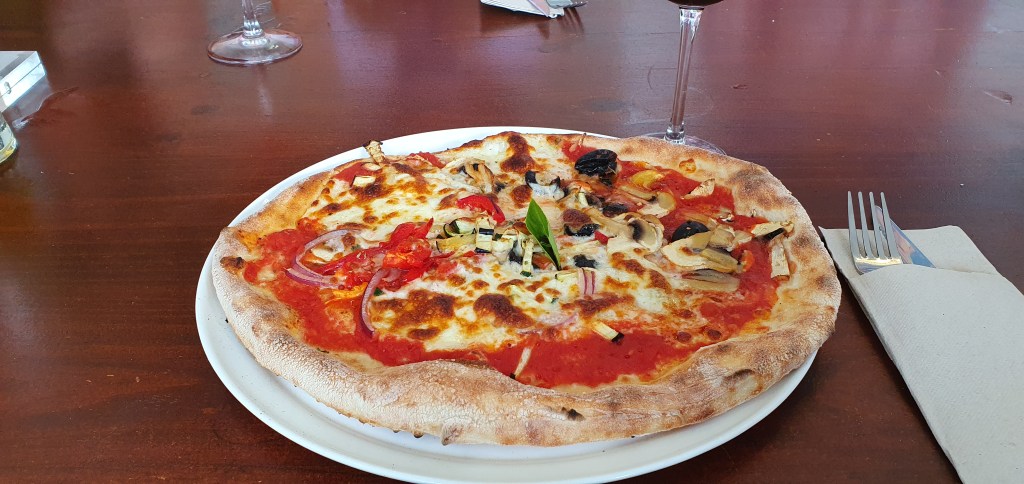 Later in the evening we set off in search of dinner. There were several food options and tonight Bridget and I sat at a large outside table in a delightful Italian restaurant with our new friends Marie, Rachel, Rushil, Sarah, Sam and Naomi.