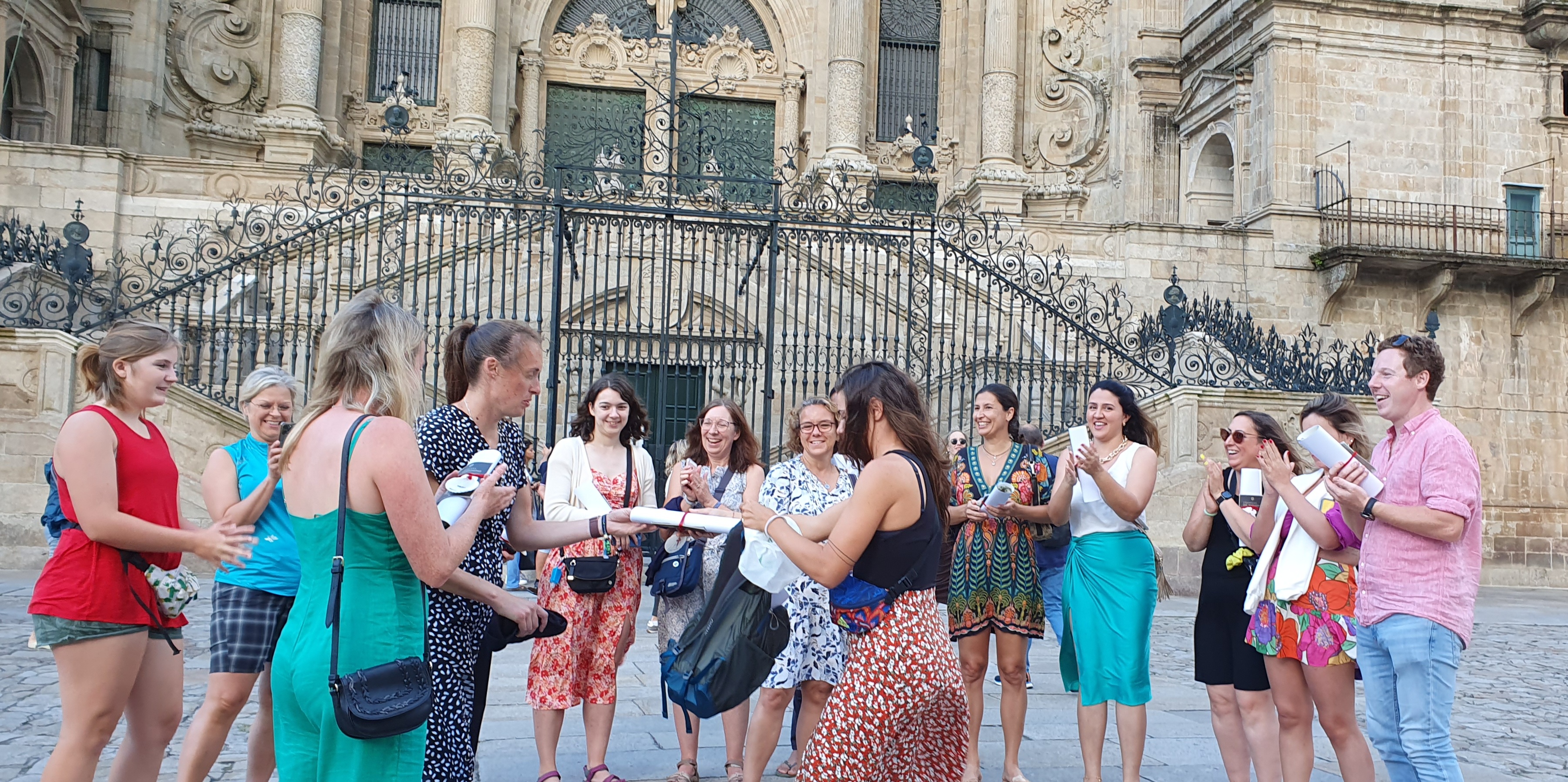 Following sangrias in the open air bar we all set off to the cathedral where Elu gave us our Compostelas, our official documents to certify completion of our pilgrimage!