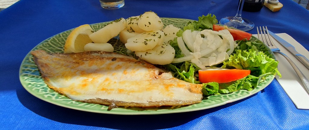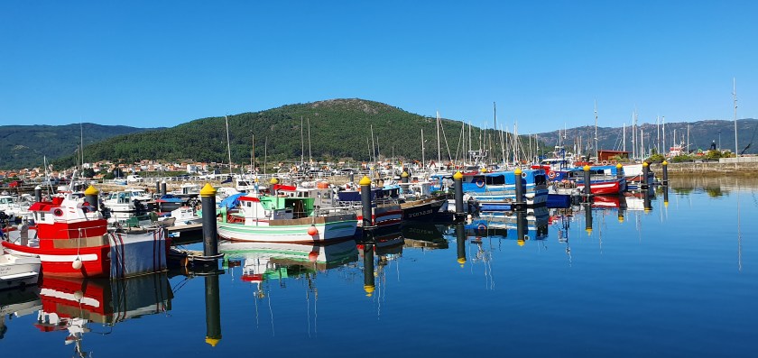Bridget and I found a shaded open air restaurant in the quaint square near the harbour. I pondered over the menu for a while deciding whether to have a local Galician dish or some freshly caught local fish! Sitting opposite the fishing boats this was an easy choice!