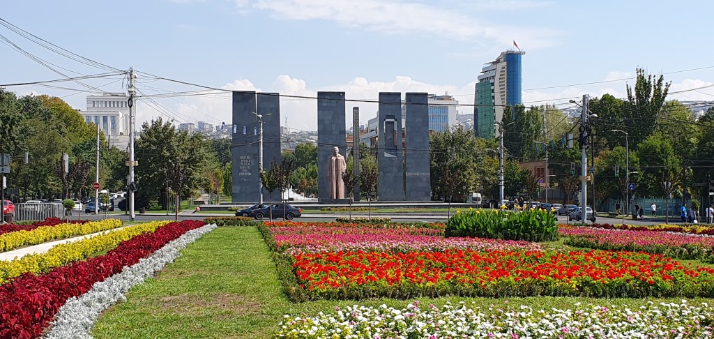 Miasnikyan Square is lined with wide straight busy roads but had an attractive centerpiece full of colourful and well maintained flowers. It was easy getting across these roads as they were well organised with wide pavements and efficient traffic lights.