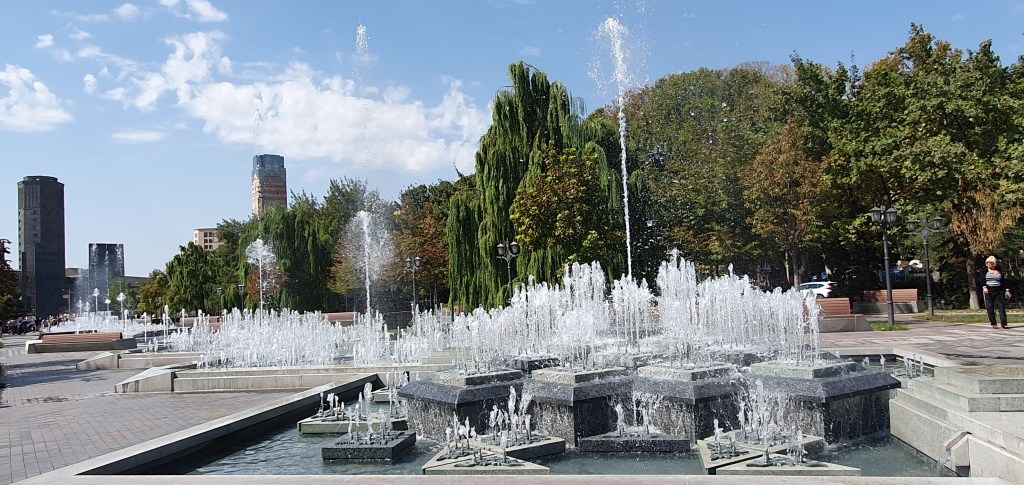 Following our initial introductions at the welcome meeting then meal at the Kilikia Beerhouse a few of us went to Republic Square to watch the evening dancing fountain show. This colourful and entertaining spectacle was accompanied by a random mix of music from Queen to classic themes to Caribbean sounds. This show takes place every evening from 20:00 – 22:00 except on Mondays.