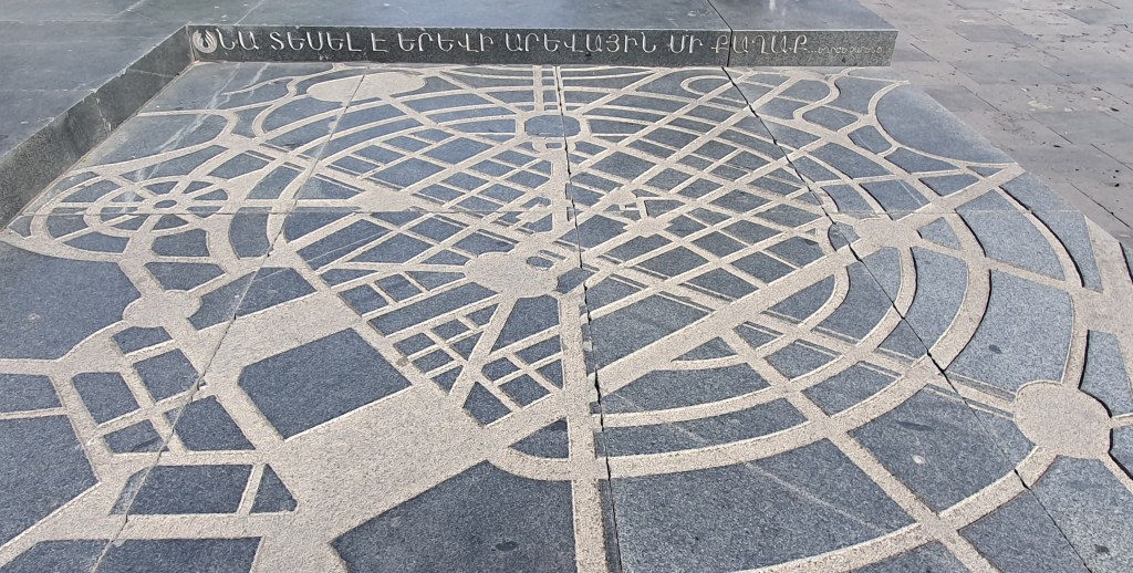 At the Alexander Tamanian statue is a street plan of the centre of Yerevan. Sonia explained the layout and various neighbourhoods of the city. She also said that Yerevan was first built in 782 BC which makes it older than Rome!