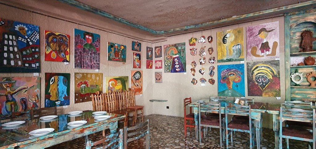 For lunch we were driven to Machanents House, a cultural art and education centre. This place was a treasure trove of handicrafts, paintings, rugs, pottery and sculptures. The one on the above right is called ‘pilgrim’ which reminded me of the Camino de Santiago last month π