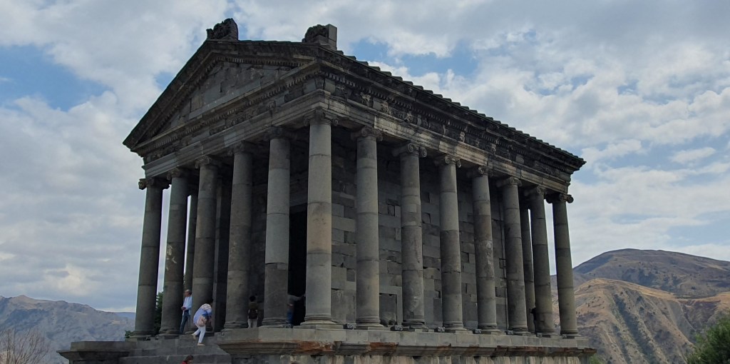 The doo doo player played his flute inside the cella of temple of Garni to a small crowd. The ‘cella’ is the Latin name for ‘small chamber’ and about 20 people could fit inside this one.