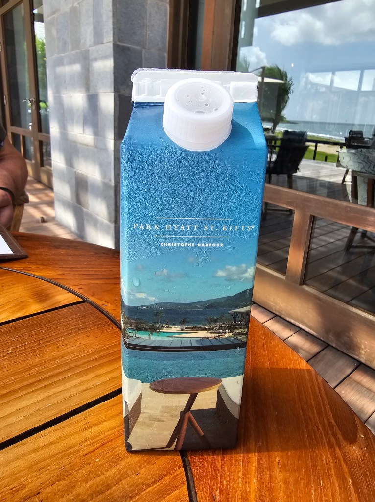 Park Hyatt St Kitts is a luxury 5 star hotel and even as outside guests we got 5 star treatment. At the cool and contemporary reception we were invited to take a (comfy) seat and were given an eco friendly carton of chilled water each while a welcoming member of the concierge made a lunch reservation in their Great House restaurant.