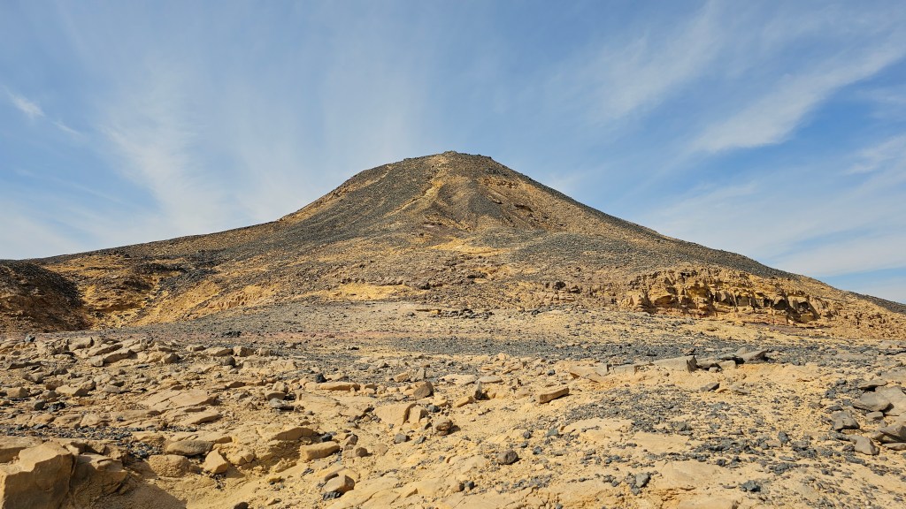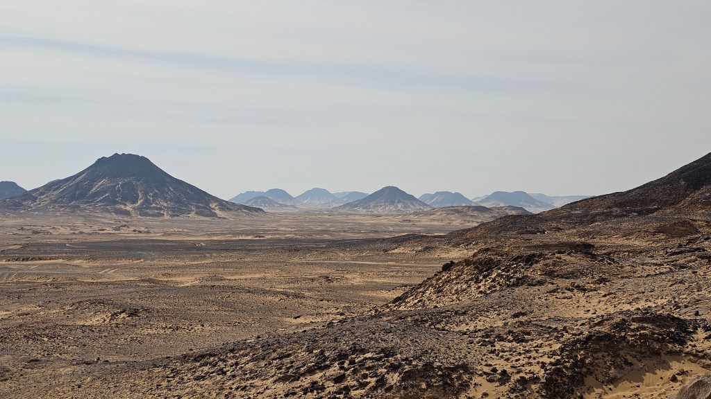 Our first stop was in the Black Desert which surrounds Oasis Bahariya. The desert is black due to iron and volcanic activity in the desert. We stopped for about 20 minutes and were able to climb about half way up the above hill which gave us panoramic views of the Black Desert.