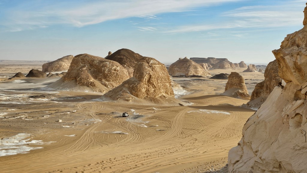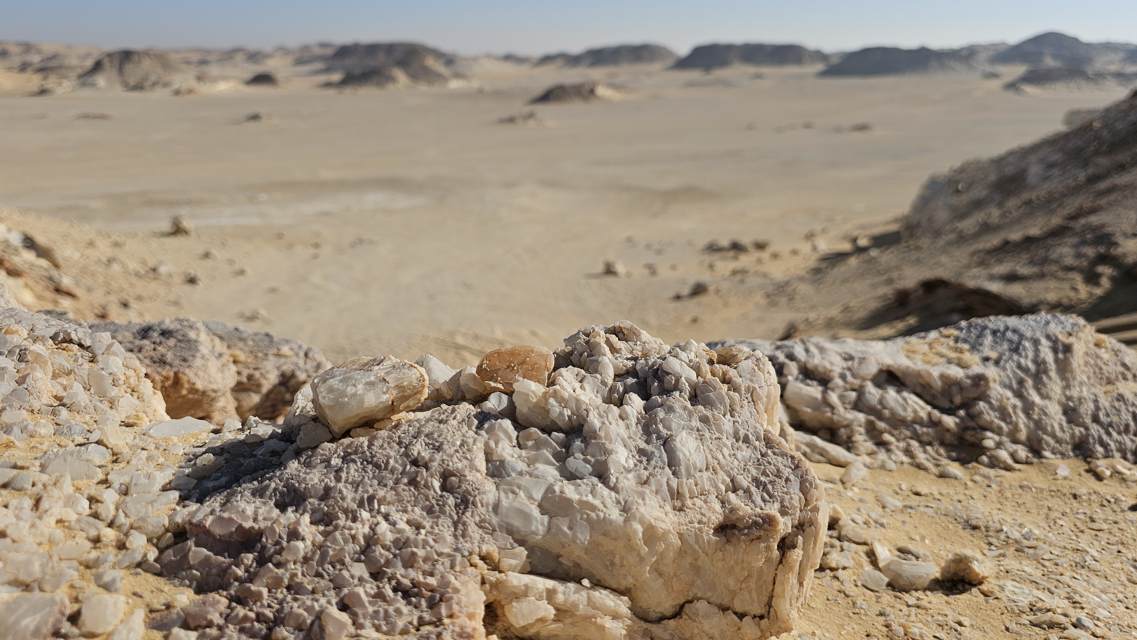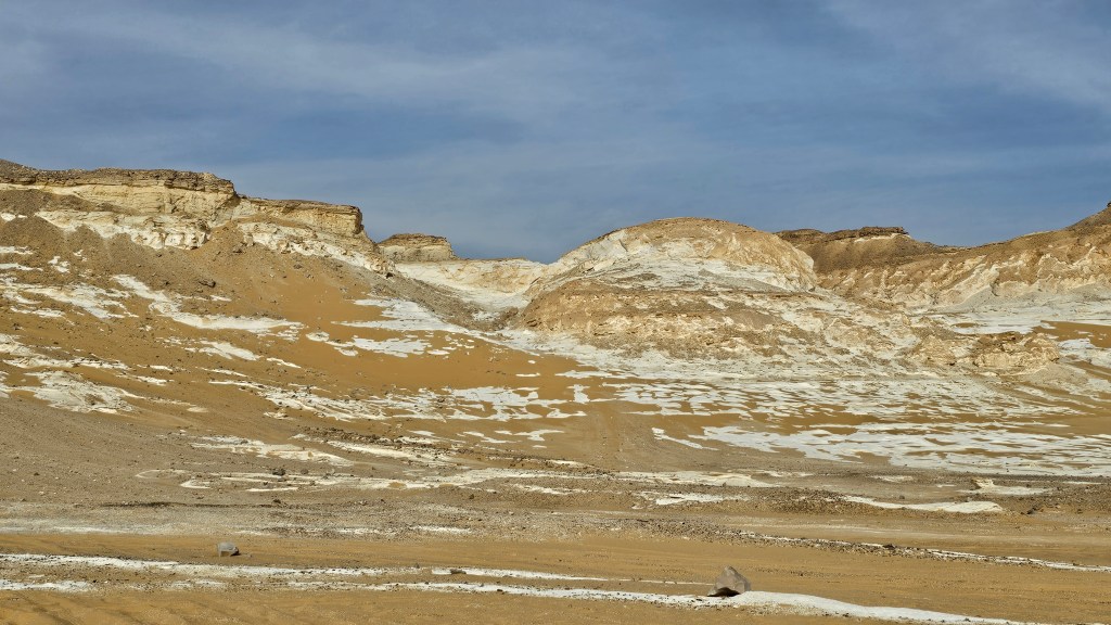The name of this unique desert comes from the layer of chalk and limestone which partly covers the landscape with the rest being the yellow sand. This part is the older section of the desert.