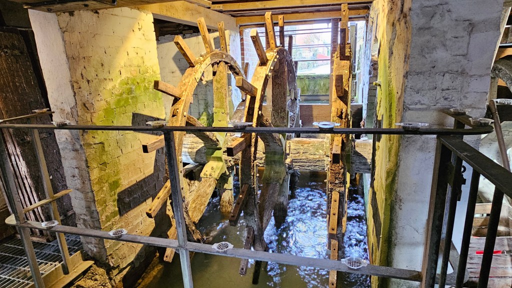 We learned that otters are regular visitors to the City Mill. In 1994, 3 otters were released further upstream of the River Itchen and since then their population has been thriving. They sometimes pass through the mill at night, swimming underneath the powerful waters. A webcam captures their activities and we saw footage from the previous night where one had been clambering around the lower rafters of the mill.