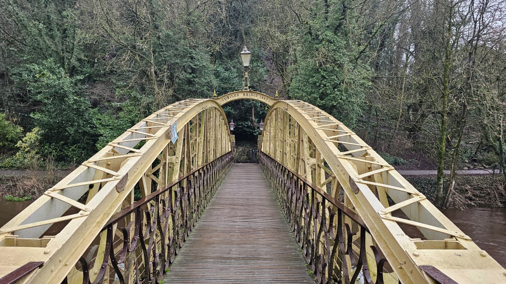 The Jubilee Bridge at Matlock Bath was built to commemorate the Silver Jubilee of Queen Victoria, then then Empress of India, in 1887.