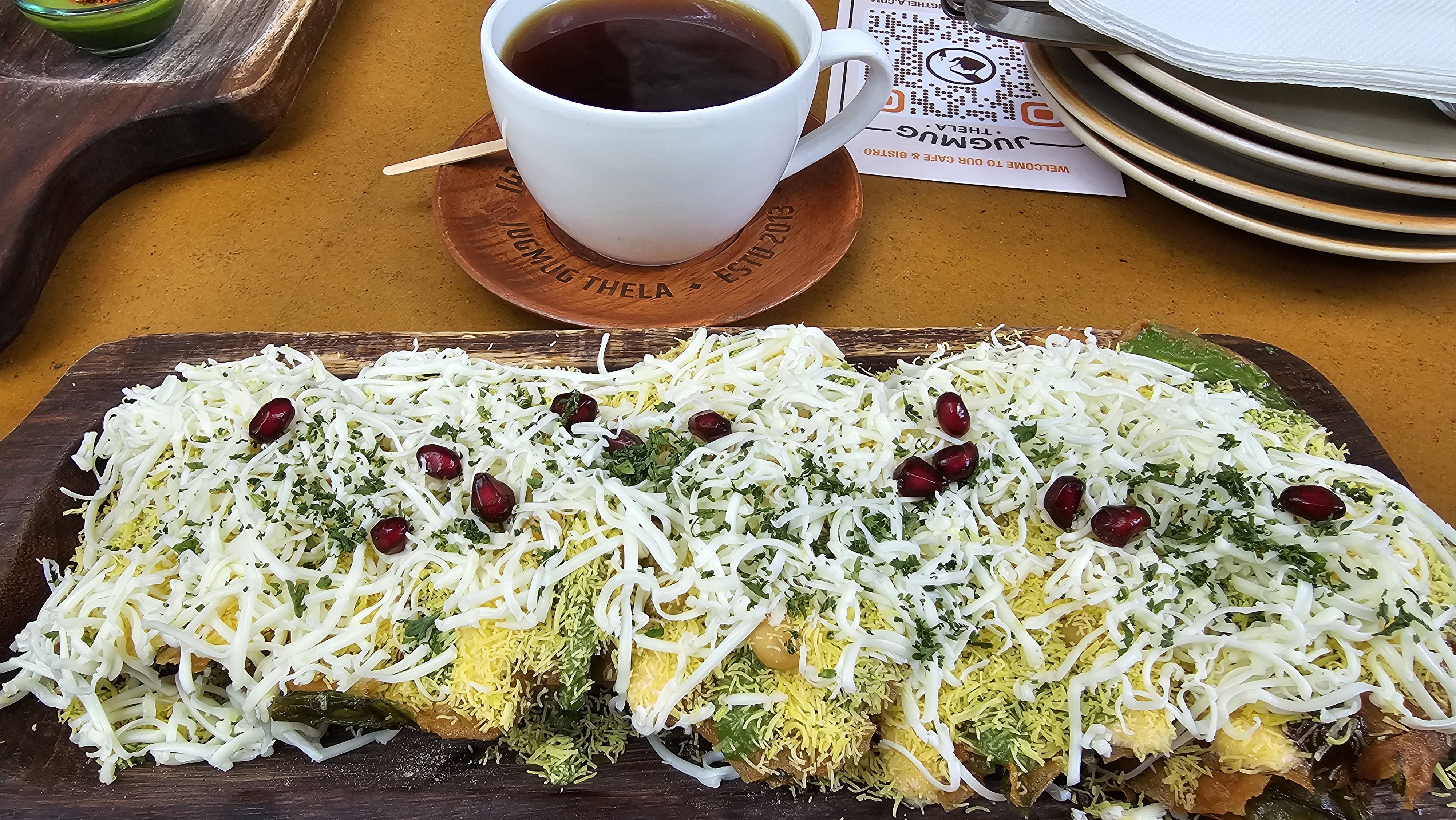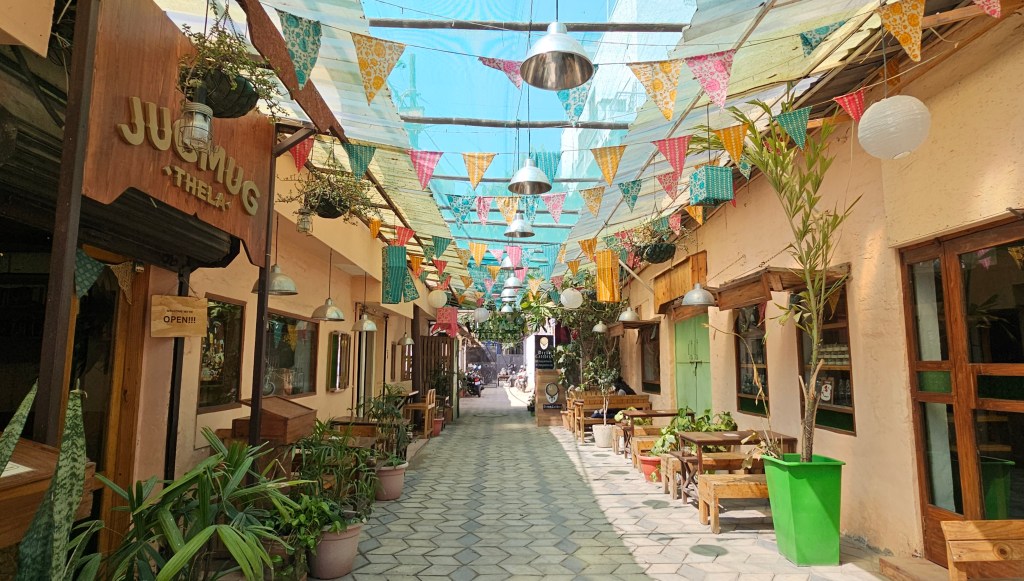 Next it was time for a snack and Abby led us through a vibrant alley of modern and quirky coffee shops to a place called Jugmug Thela where we sat in the pleasant colourful courtyard and were asked to order one drink and one snack from the menu (complimentary as part of the trip). Abby explained this cool and trendy area comes alive in the evenings with the young and the hip.