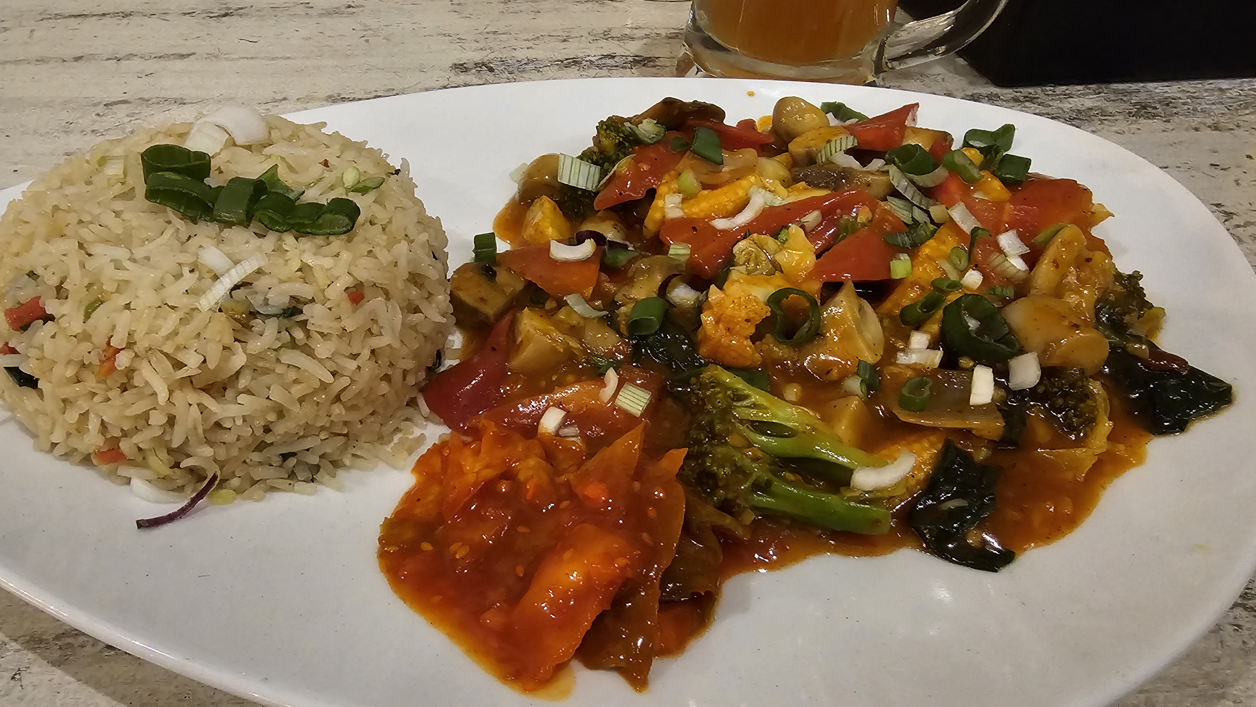 The food was good too. There wasn’t a huge Indian vegetarian selection so I had a Chinese focus with vegetable szechuan which was not at all sweet but with a perfect level of spice… a bit of a kick but not mouth burny spicy.