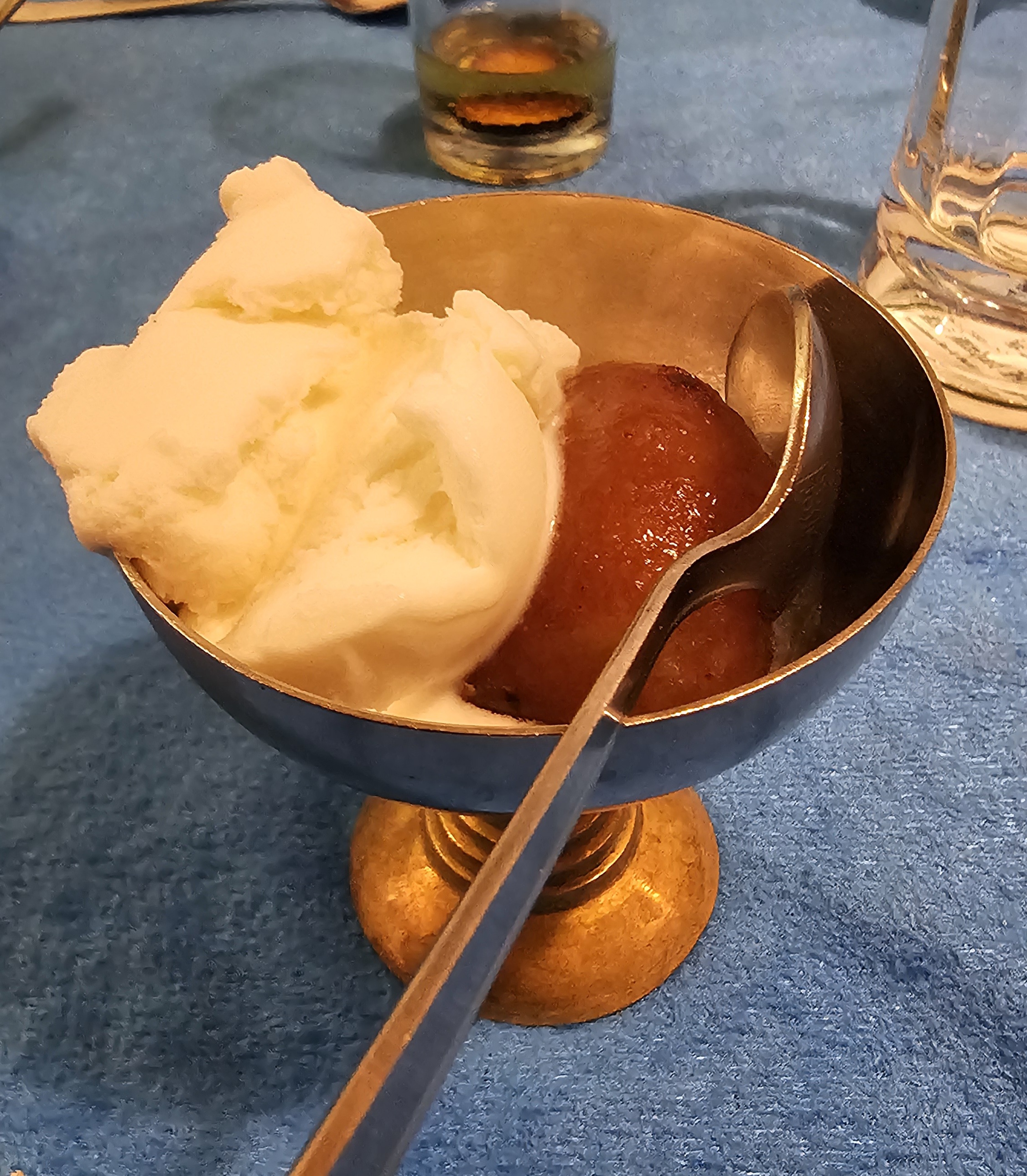 For dessert we had gulab jamun, a popular Indian ‘dough ball’ dessert which was sweet, deep fried and served warm with ice cream. Tasty but not too good for the waistline!