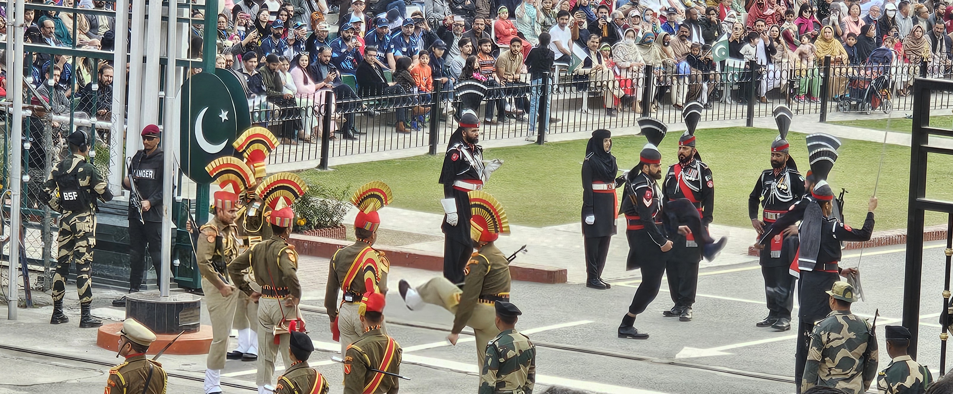As mentioned Amritsar is only 28 km from India’s border with Pakistan and every afternoon a border ceremony takes place at the Attari-Wagah border. Not quite knowing what to expect, our group was driven to the border to watch the ceremony.