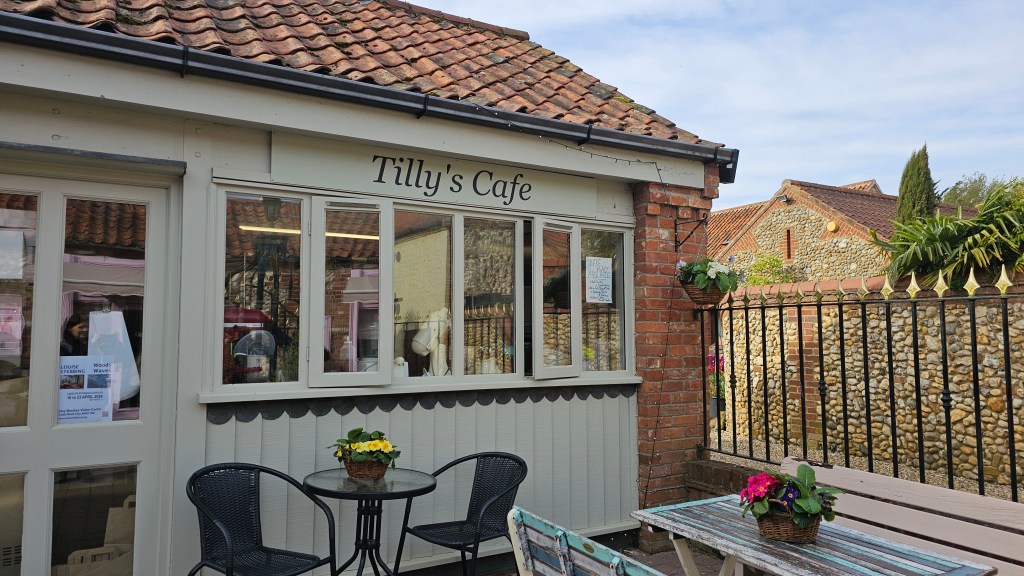 Our friend Mike had organised both walks and after an early start and a 2 hour drive, we met him and his wife Flo, together with Russell and Roza in Burnham Market at 9 am on the Saturday morning. We all parked in the Burnham Market car park PE31 8UR at a cost of Β£6.80 per car for the day. You have to pay either by cash or (somewhat annoyingly) via an app. There wasn’t a facility to tap your card so you need to have a signal to download the app if you don’t have the cash. Anyway – following a quick breakfast snack in Tilly’s cafe the 6 of us set off in the sunshine with Mike leading the way.