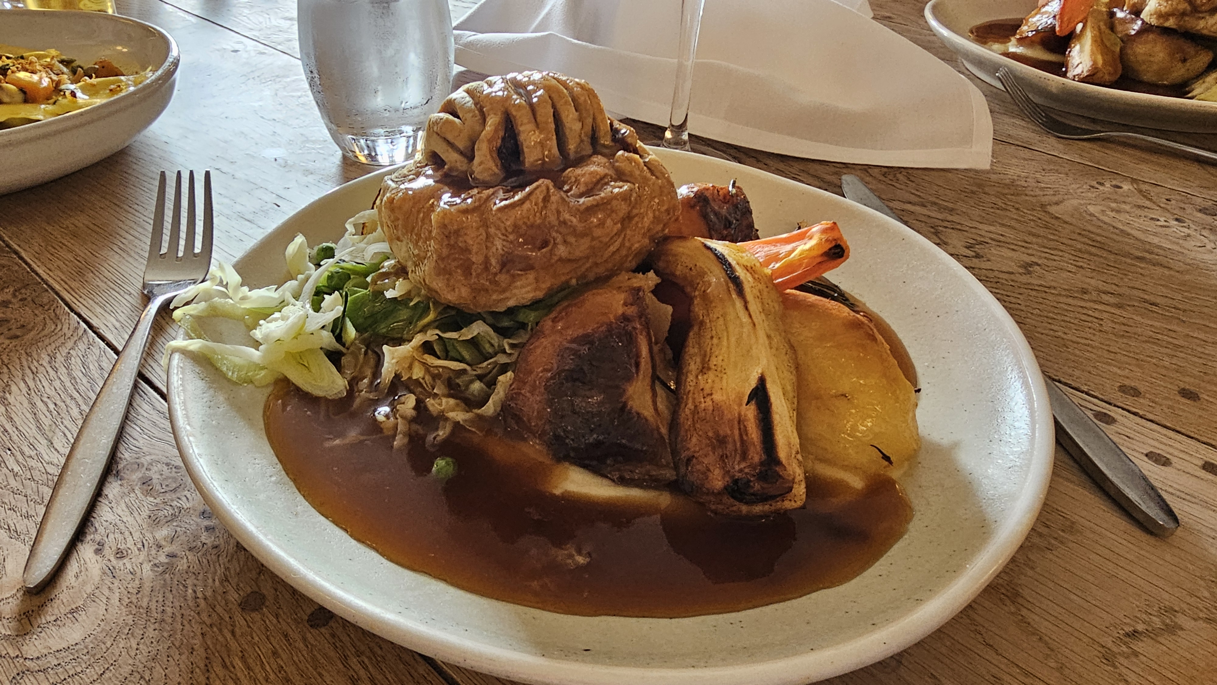After 4 hours 20 minutes and 11.5 miles we arrived back at the village green of Burnham Market at around 2.15 pm so just in time for Sunday lunch! We hadn’t booked anywhere and tried our luck for a table for 6 back in the Hoste restaurant. Their large restaurant was busy but thankfully we were accommodated and Chris and I enjoyed a delicious mushroom and cashew nut wellington – the perfect end to a long and bracing Sunday walk.