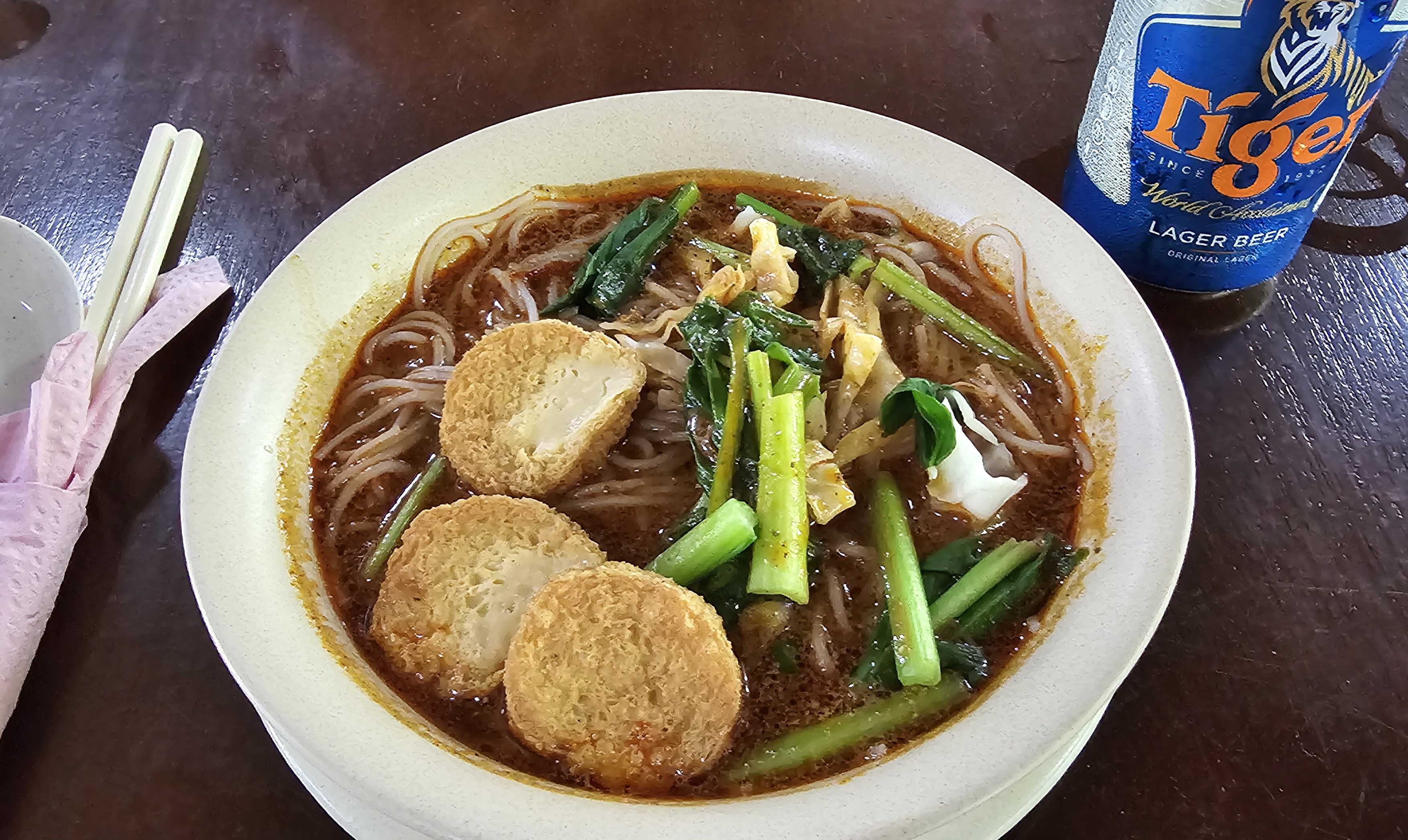 Laksa originates from Kuching and is a staple dish of Malaysia with many variations. It is popular in restaurants as well as at hawker stalls.