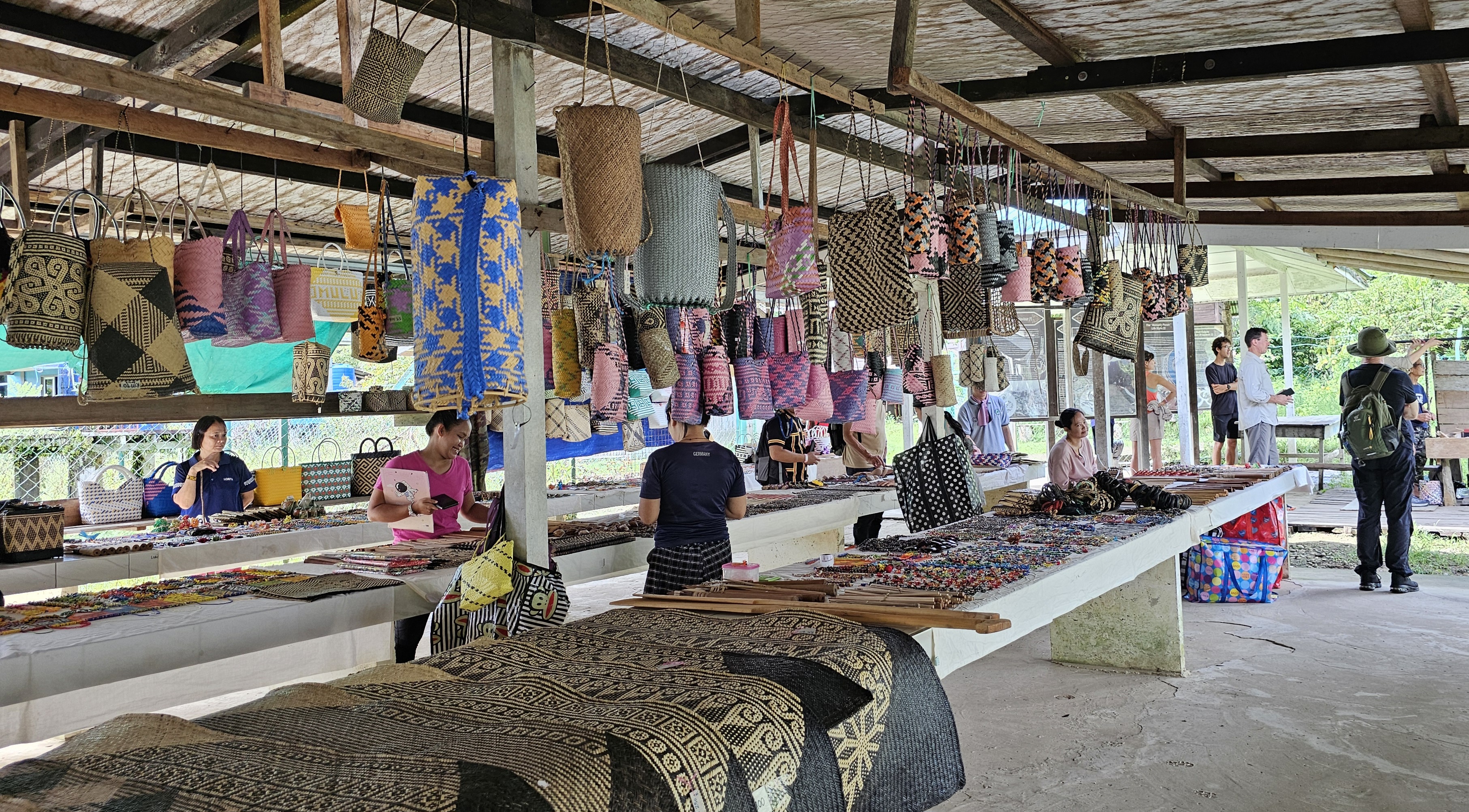 After about 10 minutes we stopped at a village called Batu Bungan where we were shown to a handicraft market. People from the Penan community have lived a traditional life in Batu Bungan for generations however creation of the Mulu National Park provided opportunities and the concept of labour and a cash society.
