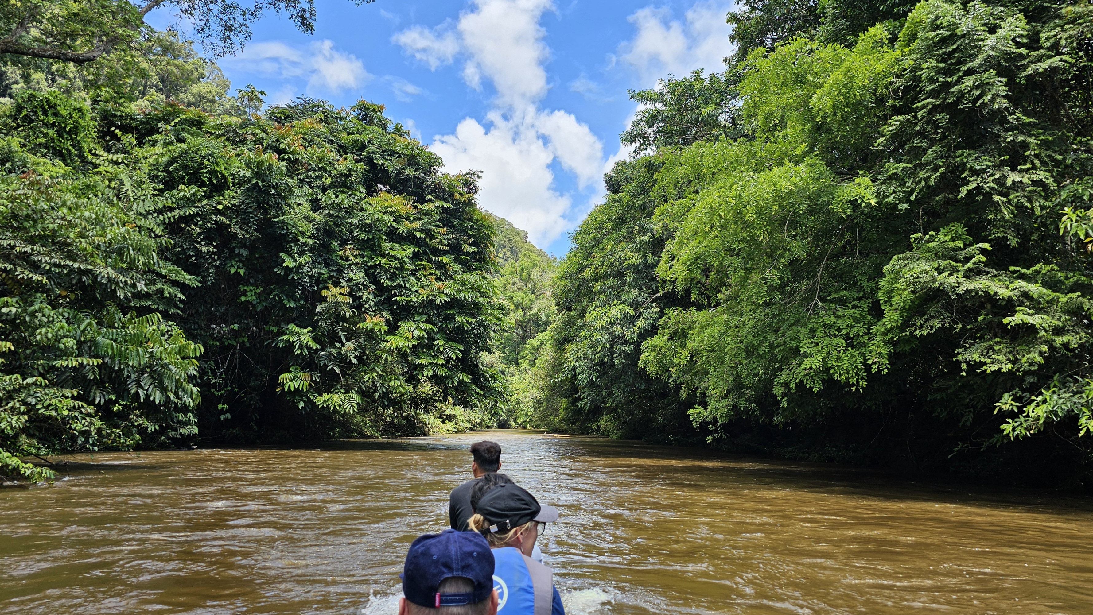 We met with another group and at 9.15 am we boarded small motorised boats to speed us up the river towards the Cave of the Winds and Clearwater Cave. We were pleased to have Shuki again as our guide for this tour.