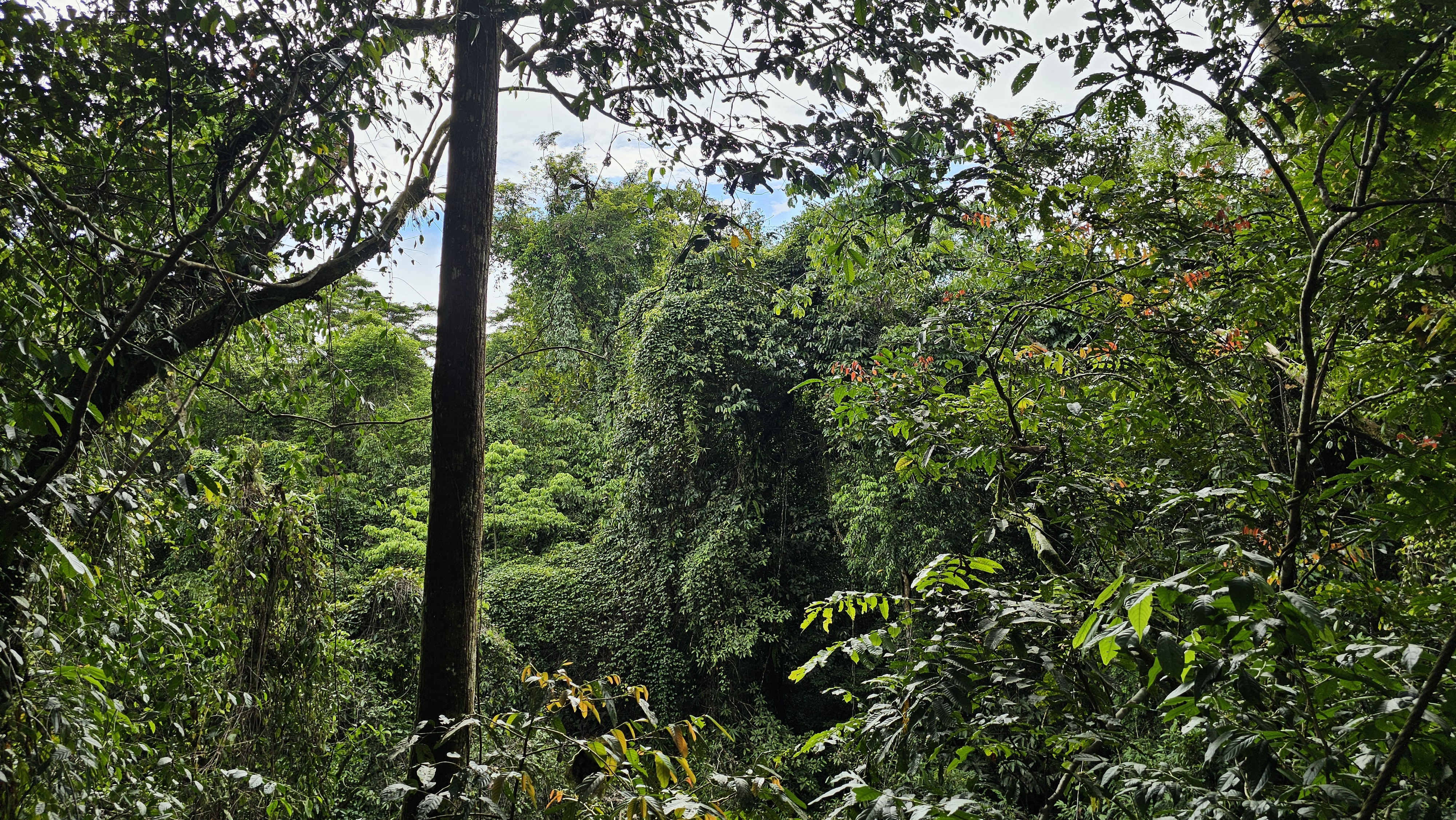 Before returning to the hotel we obtained a key, walked a few hundred meters back into the rainforest and climbed a tall steel tower called ‘Tree Top’ to look at the rainforest from above. The idea is for bird watching although we didn’t see many. And I’m not sure why it is kept locked up.