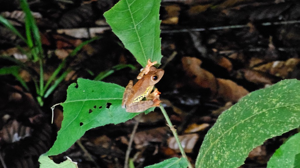 Later that evening we returned to the National Park entrance in time for our 7 pm night tour. We had Shuki as our guide again and met a new small group of people. Armed with torches, we spent 2 hours walking slowly round the rainforest in the dark with Shuki using his expertise both to find night creatures, identify them and provide us with some interesting information.
