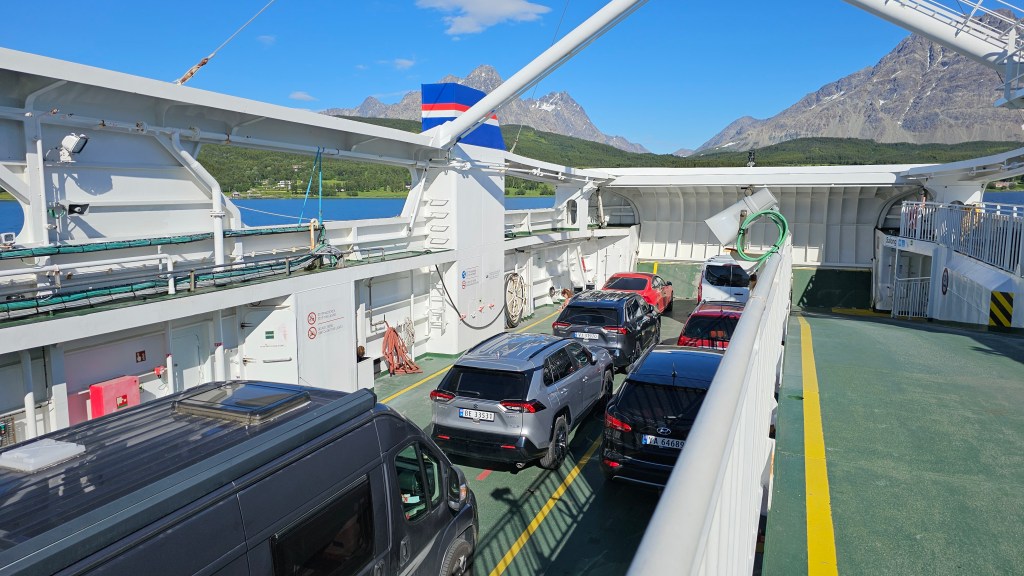 We had a choice of 2 routes, both of which would take around 2 hours. Rather than take the road we opted for the ferry route which crossed from Breivikeidet to Svensby.