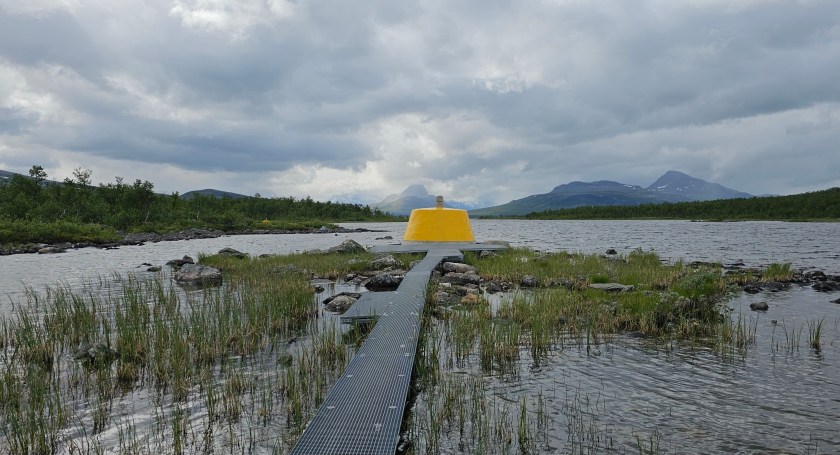 After 11 km the 6 of us arrived together at the three country cairn, the only place in Norway where you can walk freely between Norway, Finland and Sweden. Around the cairn in about 30 seconds!