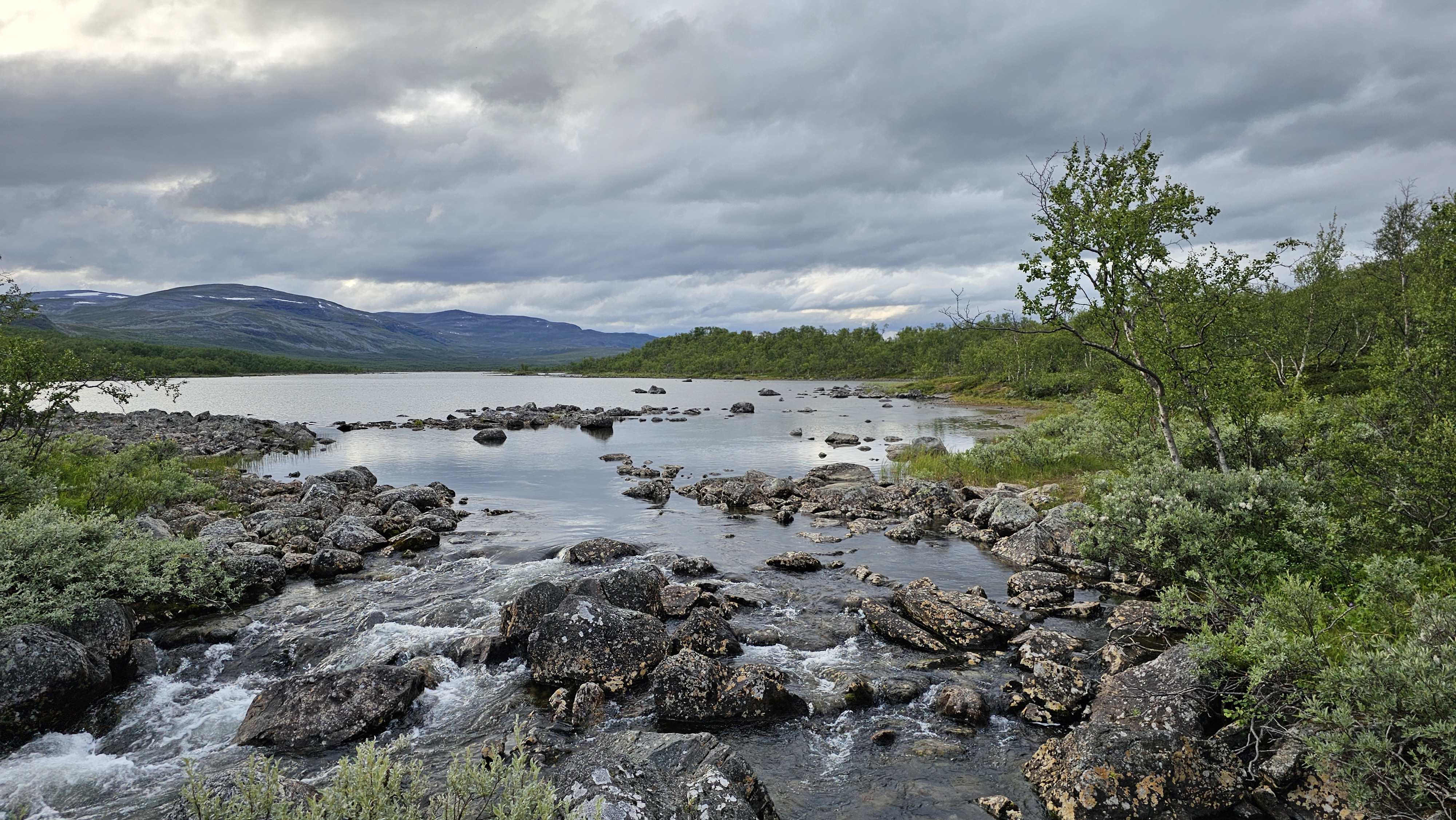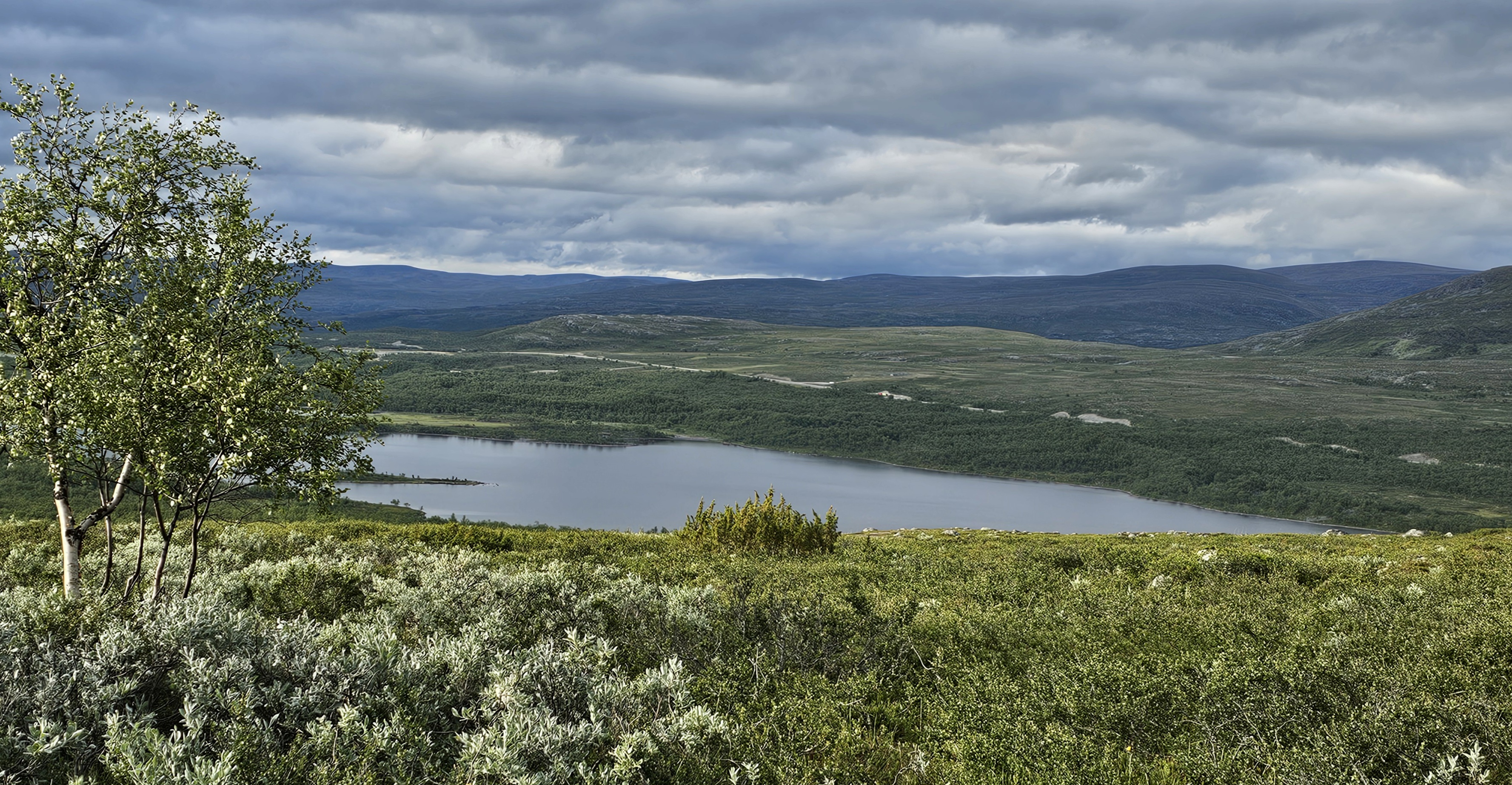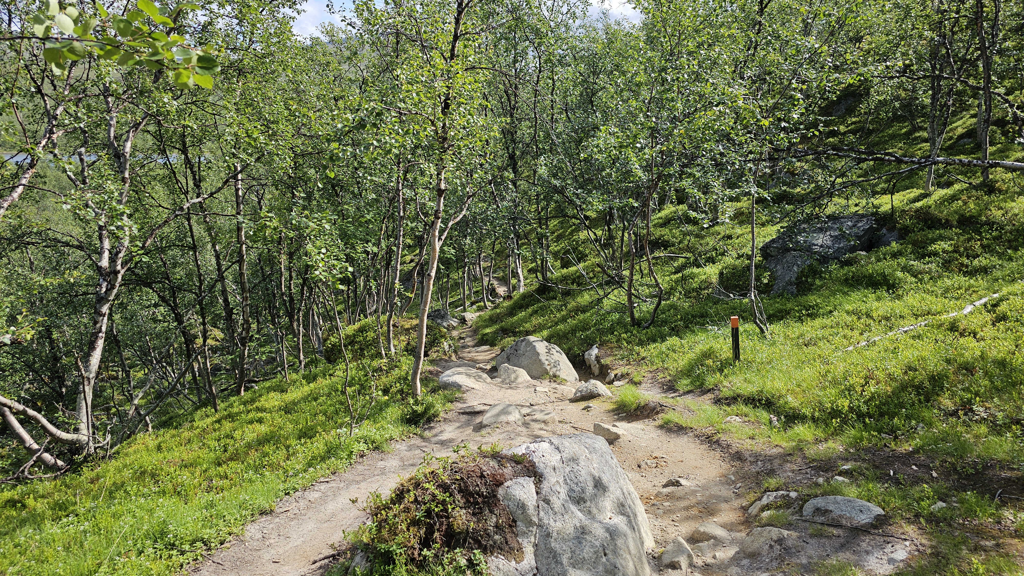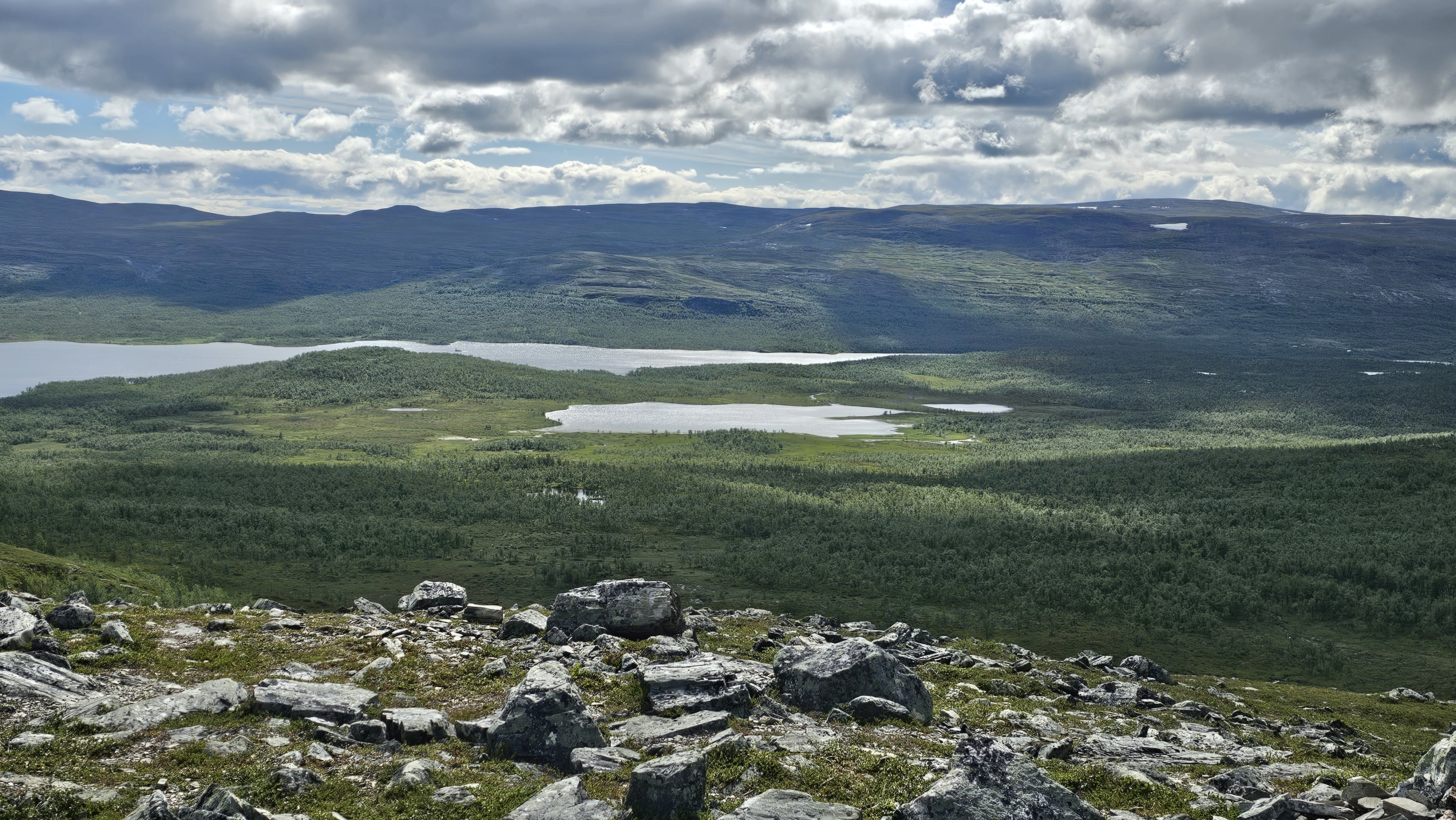 After a rocky uphill path through shady trees the walk opened up and we began to see panoramic views across northern Scandinavia.
