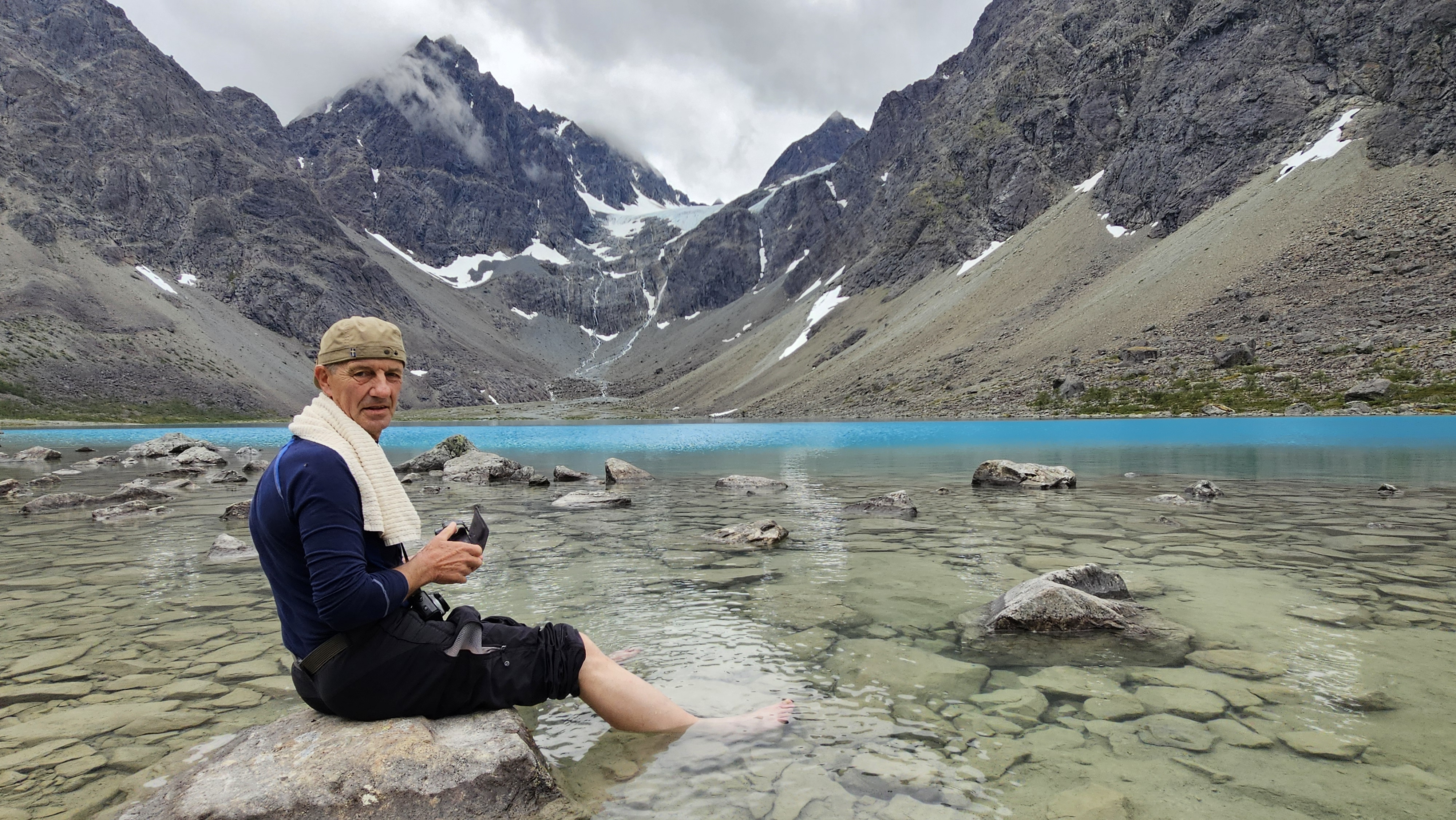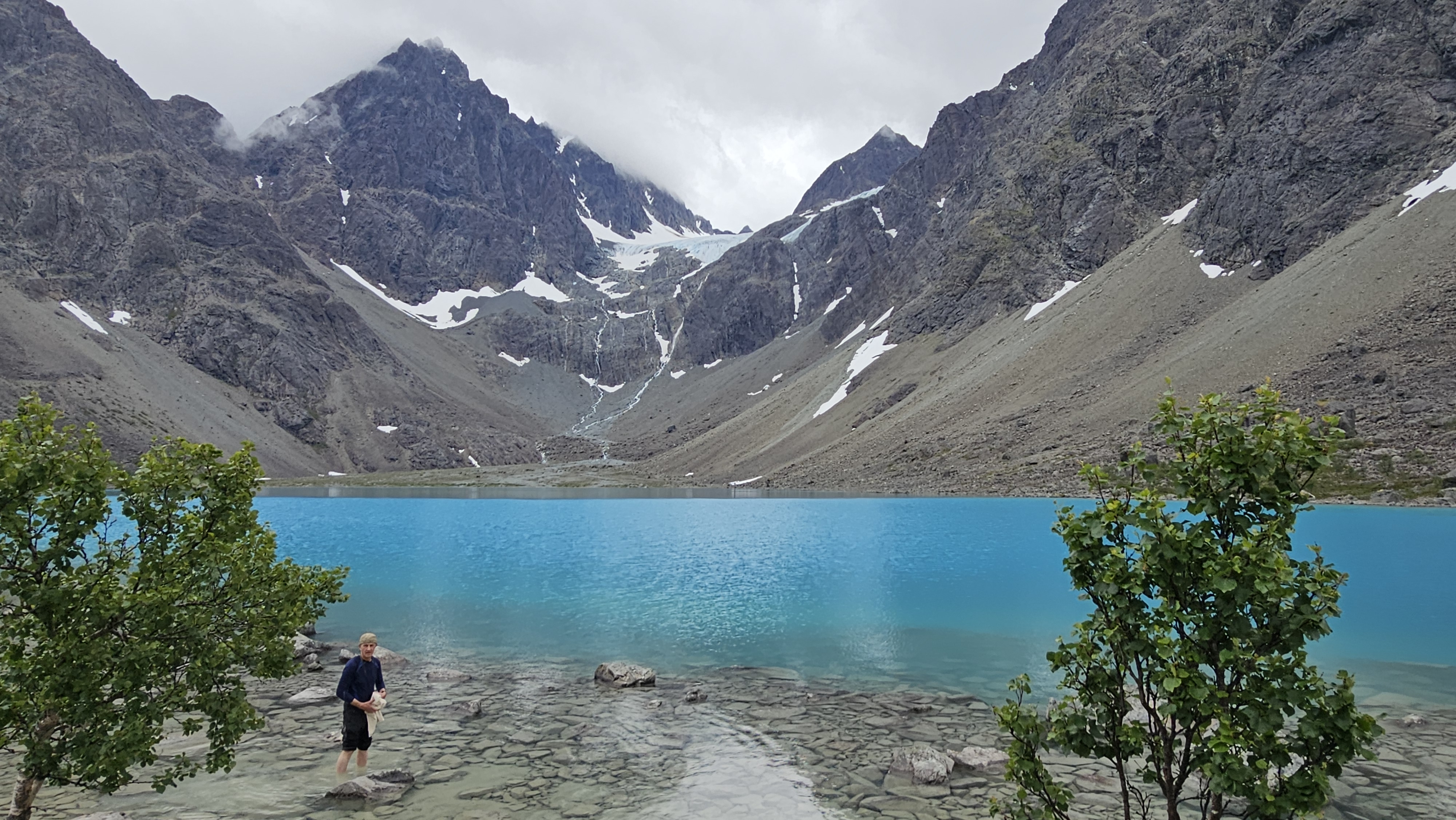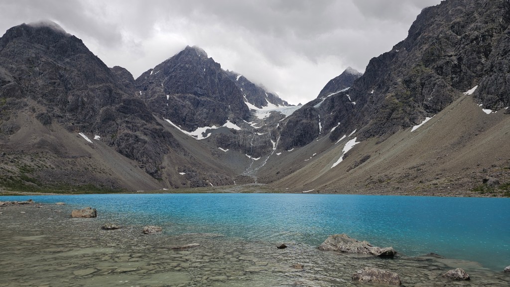 This was a relatively short walk and with 4 km each way of continuous stones to walk on it was tricky and uncomfortable. However, even in cloudy weather this was one of the bluest lakes we’ve ever seen.