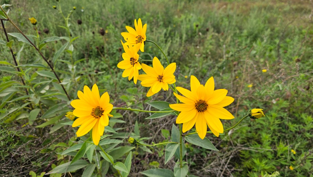 But we did see the occasional splash of yellow with some perennial sunflowers growing at the side of the track.