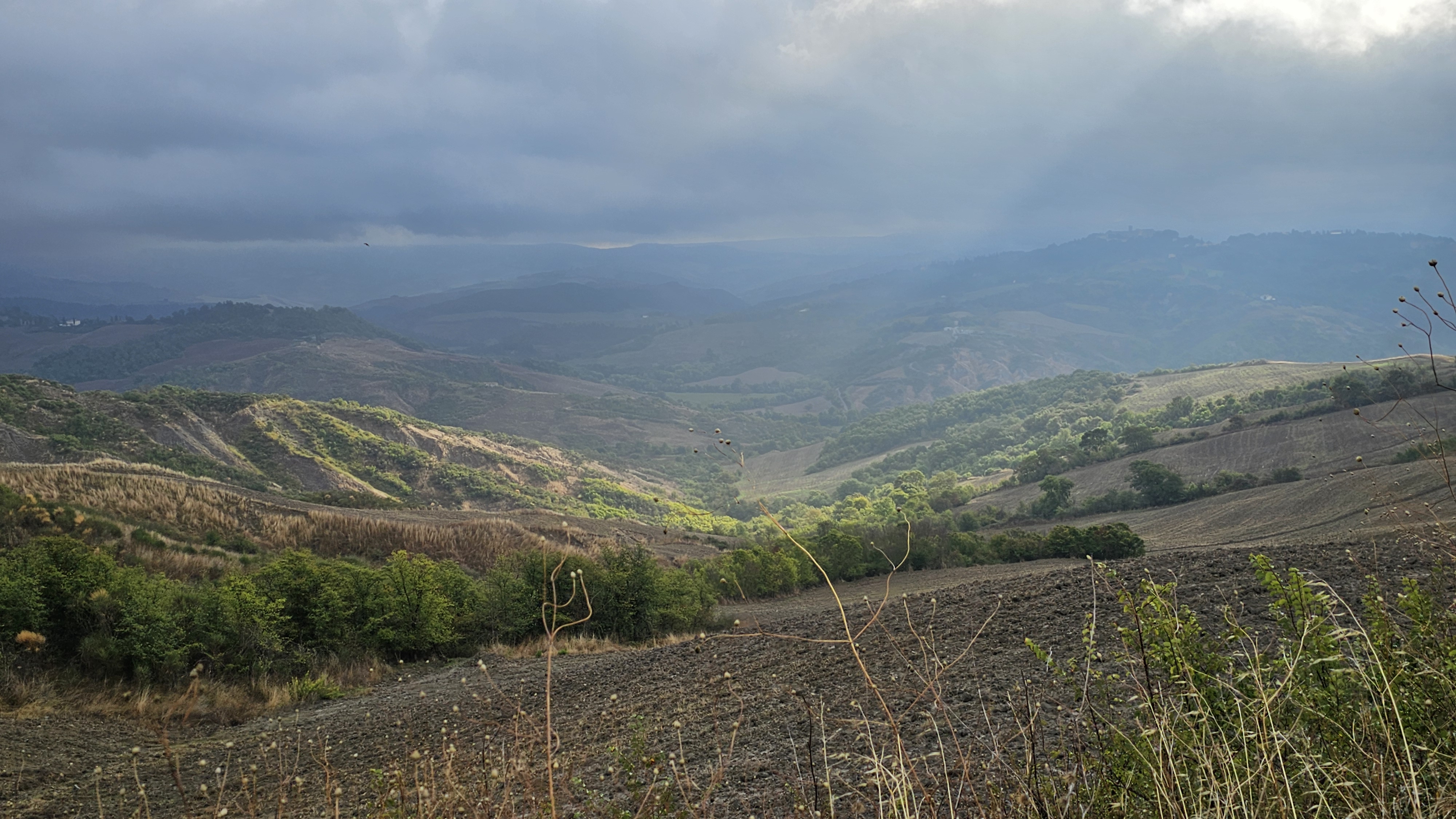 After about 20 minutes we had some light rain but after that the fog gradually began to lift revealing dramatic harsher landscape which was quite different to the neat olive groves and cultivated fields of previous days.